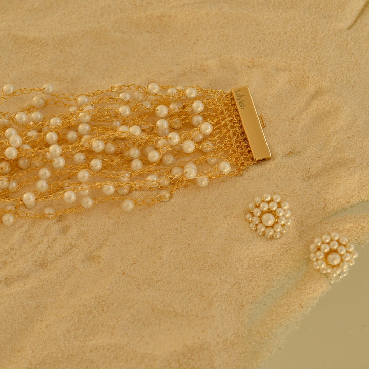 Pearl & Gold Strings Handmade Crochet Bracelet