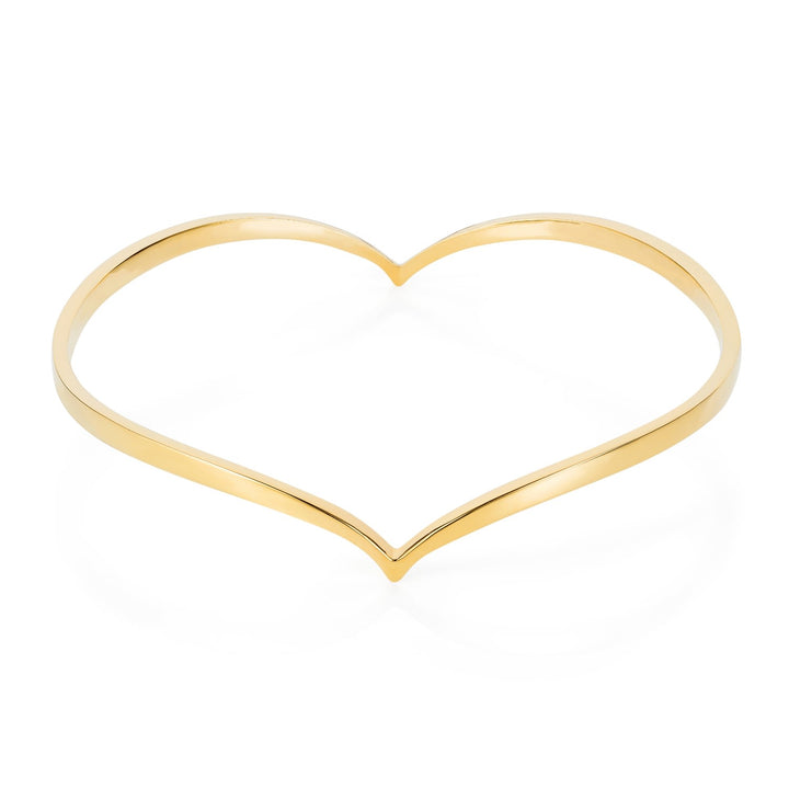 This Heart Bangle - Gold by Lee Renee is an elegant and timeless piece with a secret detail. The sleek, classic bangle is designed to form a hidden heart shape, known only to the wearer. This versatile piece can be worn in three different ways, allowing you to style it to suit your mood and revealing its secret charm.