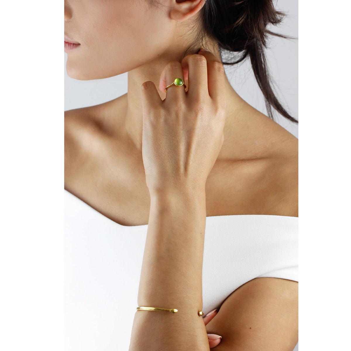 This Snake Emerald Bangle by Lee Renee is a stunning and elegant accessory. It features two snakes, with brilliant-cut emeralds for eyes, intertwined around a delicate bangle base. This piece is handmade from recycled silver and heavily overlaid with 18ct gold, making it a timeless and luxurious addition to your jewelry collection.