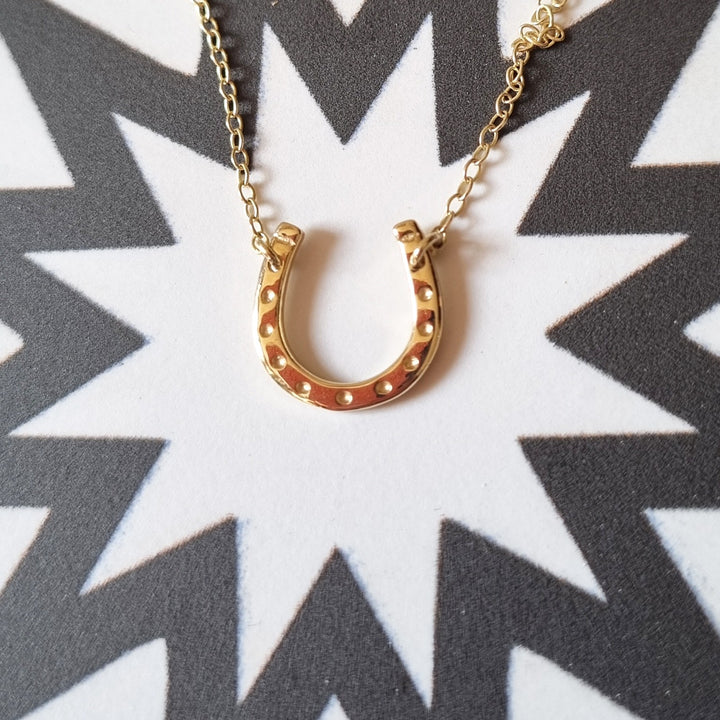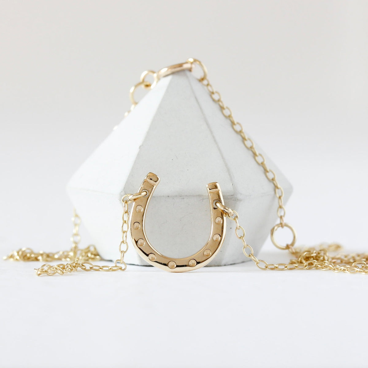 The Lucky Horseshoe Necklace is a timeless piece designed to bring the wearer good fortune. The horseshoe pendant is handmade from recycled sterling silver and heavily overlaid with 18ct gold vermeil. The delicate belcher extender chain is designed to sit at the collarbone, making it perfect for stacking or wearing on its own.