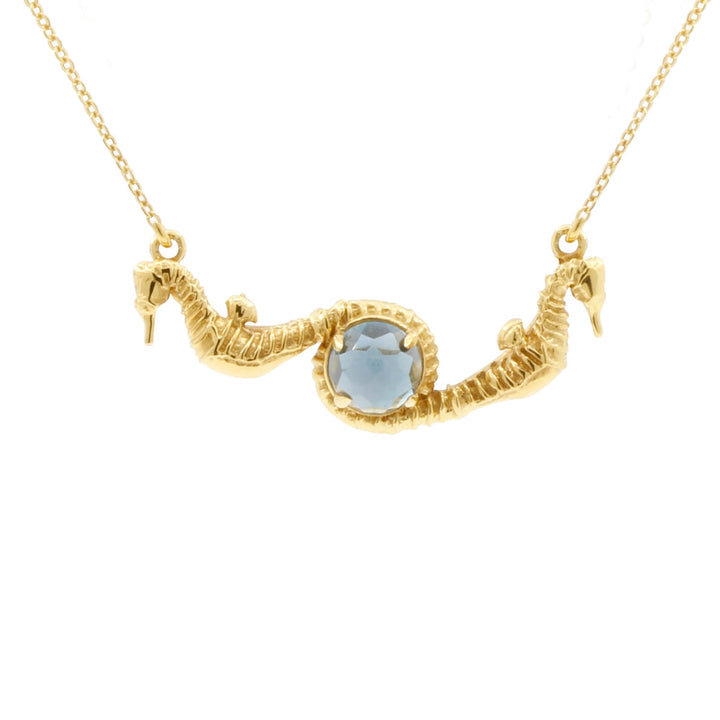 Seahorse Blue Topaz Necklace – Gold