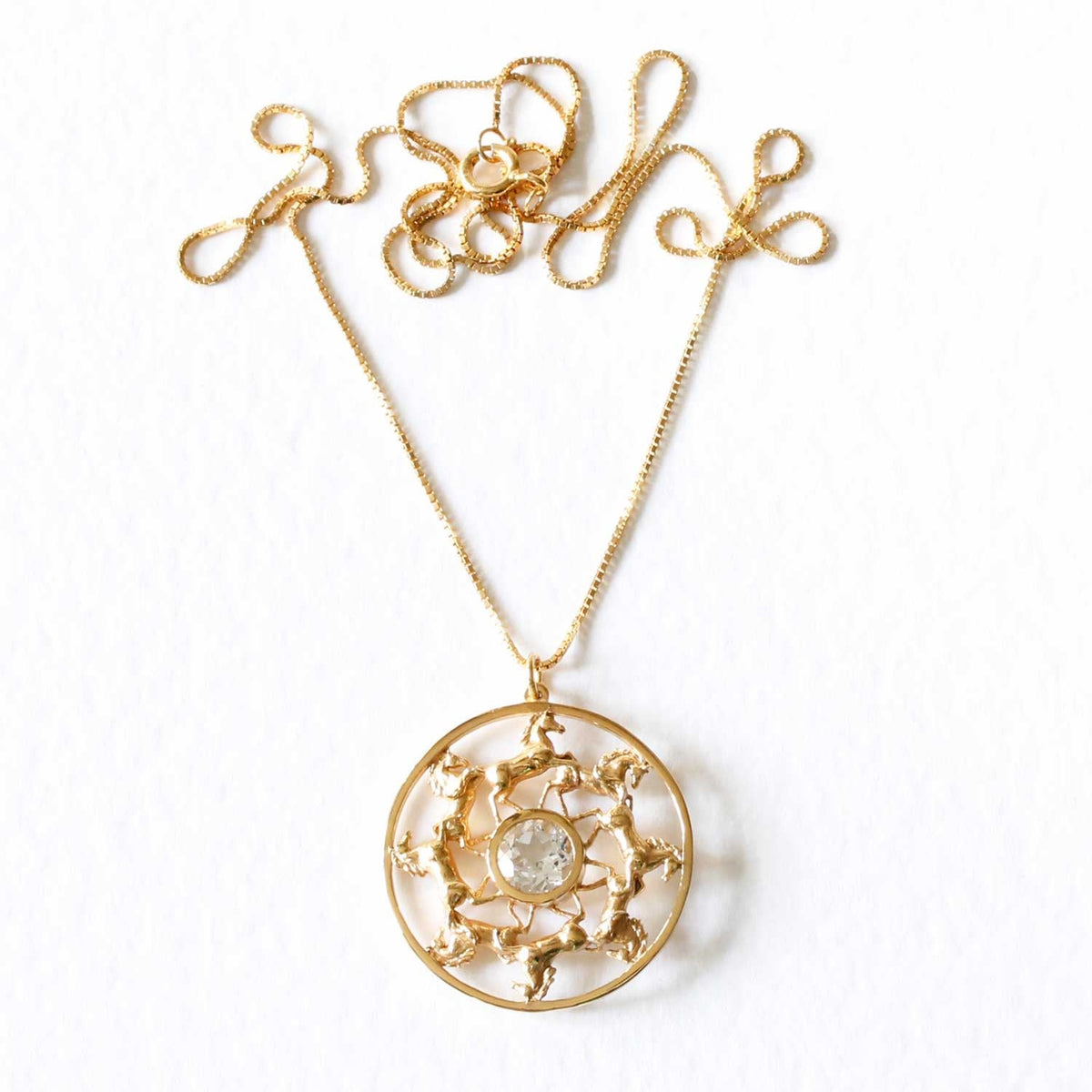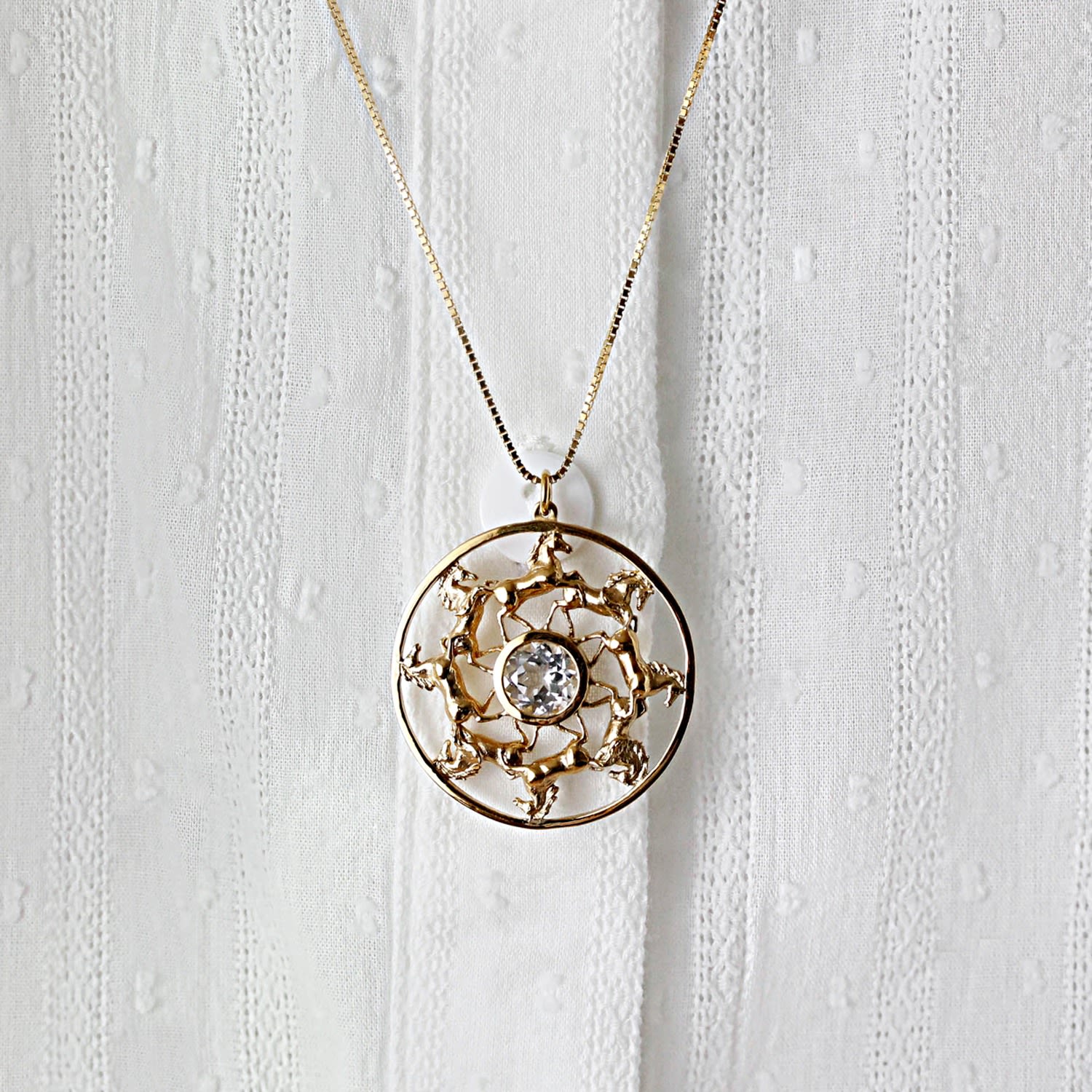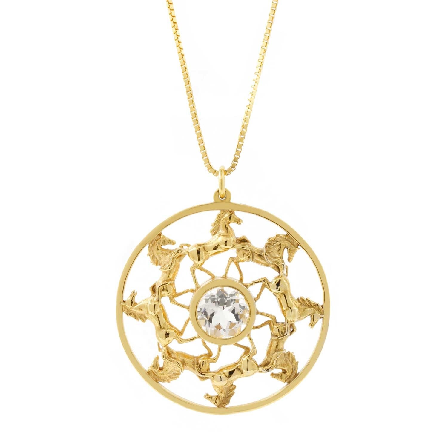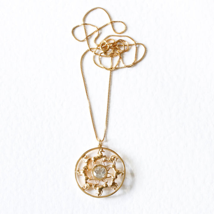 Wild Horses Topaz Medallion Necklace - Gold