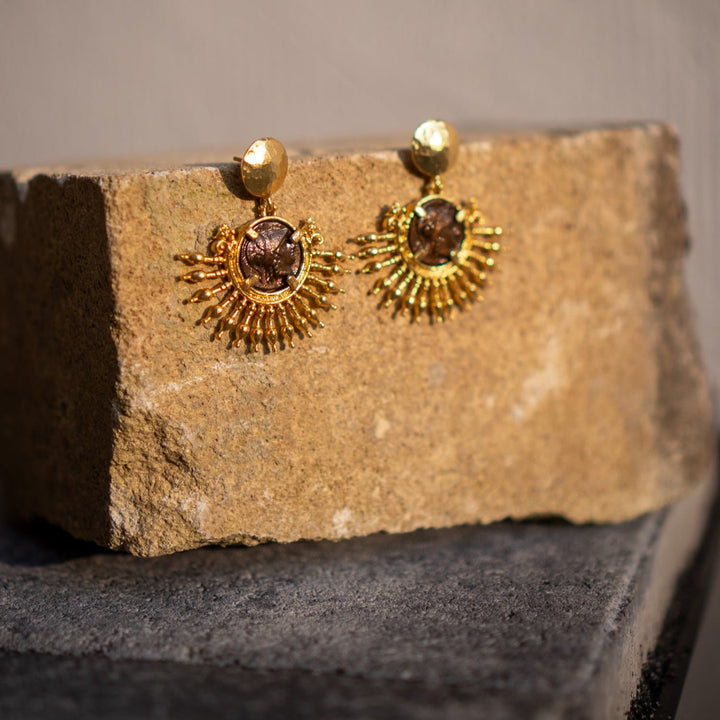 The Ancient - Statement Earrings are a grand pair with historical inspiration. Drawing from the cultural heritage of ancient Istanbul, these chandelier earrings are made from 100% brass and are 24K gold plated. Their bold design is a celebration of opulence and artistry.
