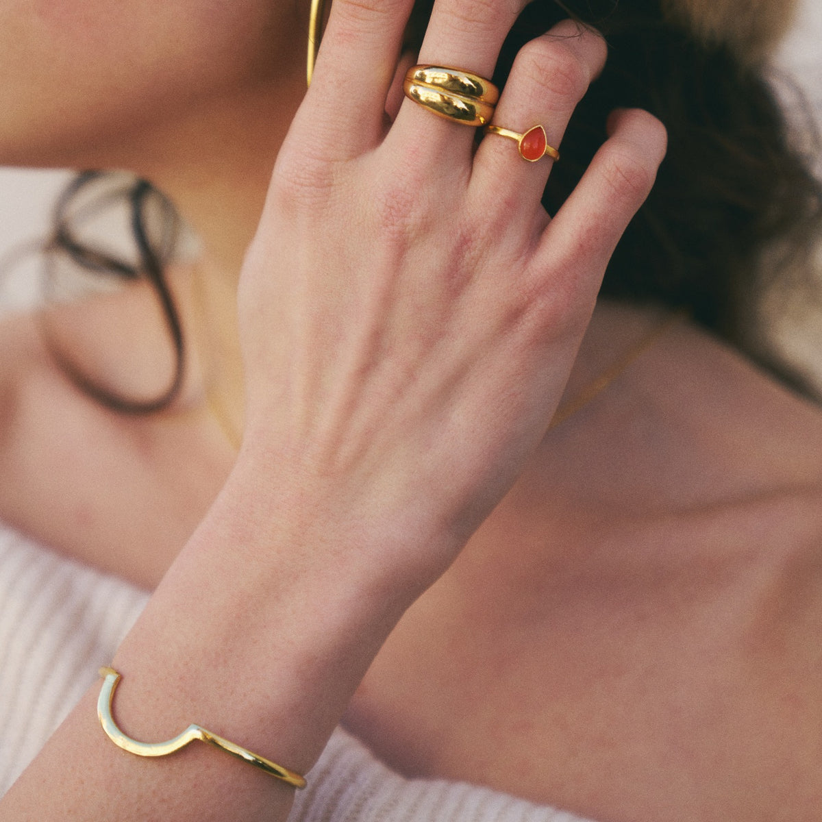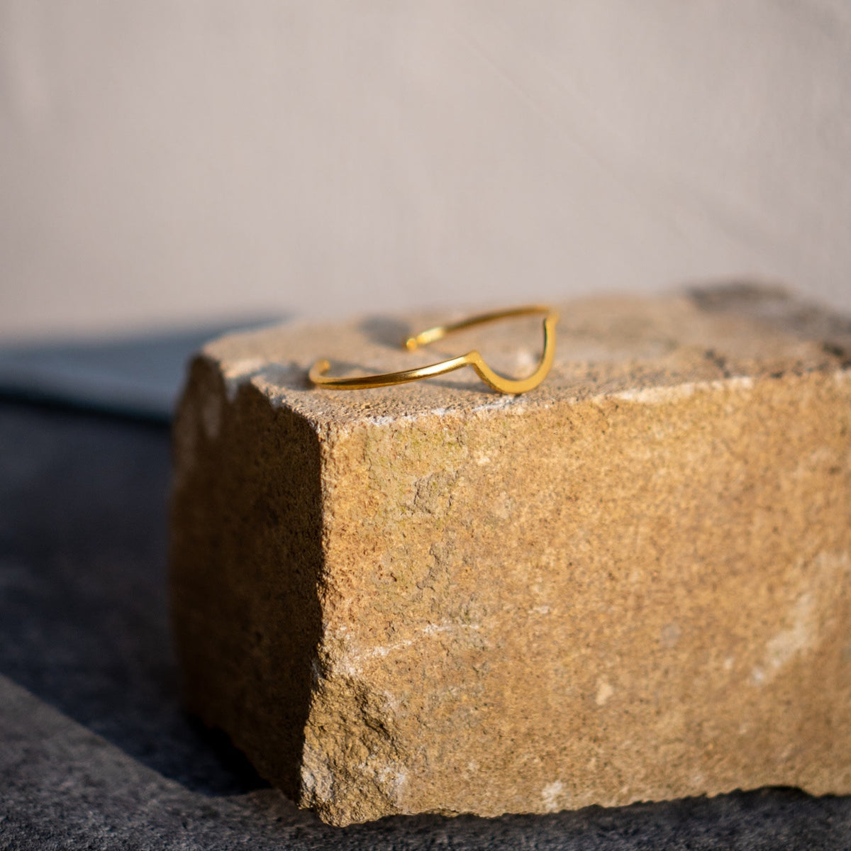 This cuff bracelet is crafted from 100% brass and is 24K gold plated.