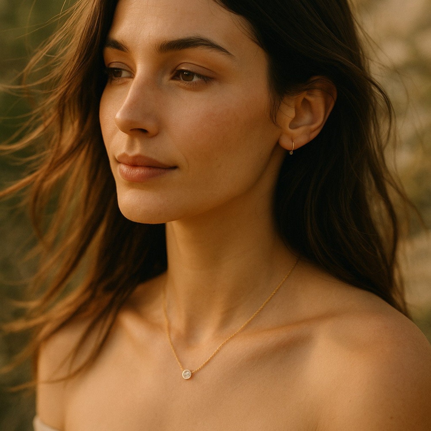 This Large Diamond Solitaire Necklace by Lily Flo is an elemental and timeless piece. A 0.08ct natural brilliant-cut diamond is set in a minimal gold rim, with a signature cup bezel setting that bounces light in every direction for maximum shine. Each piece is handmade in London, making it perfectly imperfect and uniquely yours. It’s a classic, elegant necklace designed to be a beautiful, bespoke staple.