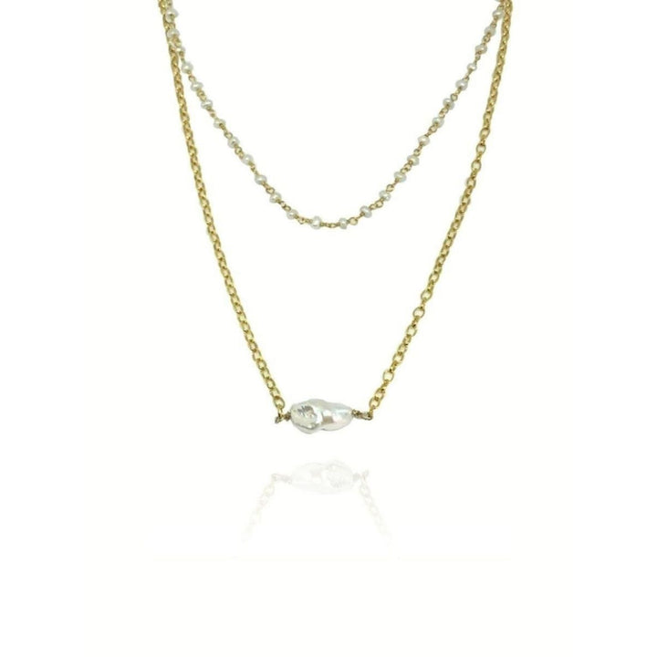 This Doby Double Chain Pearl Necklace by Linya Jewellery is a sophisticated piece that doubles the unique beauty of pearls. Each chain is adorned with an exquisitely designed pearl, creating an air of elegance and luxury with every movement. This necklace is an ideal accessory for both daily wear and special occasions, adding a timeless and captivating charm to your style.