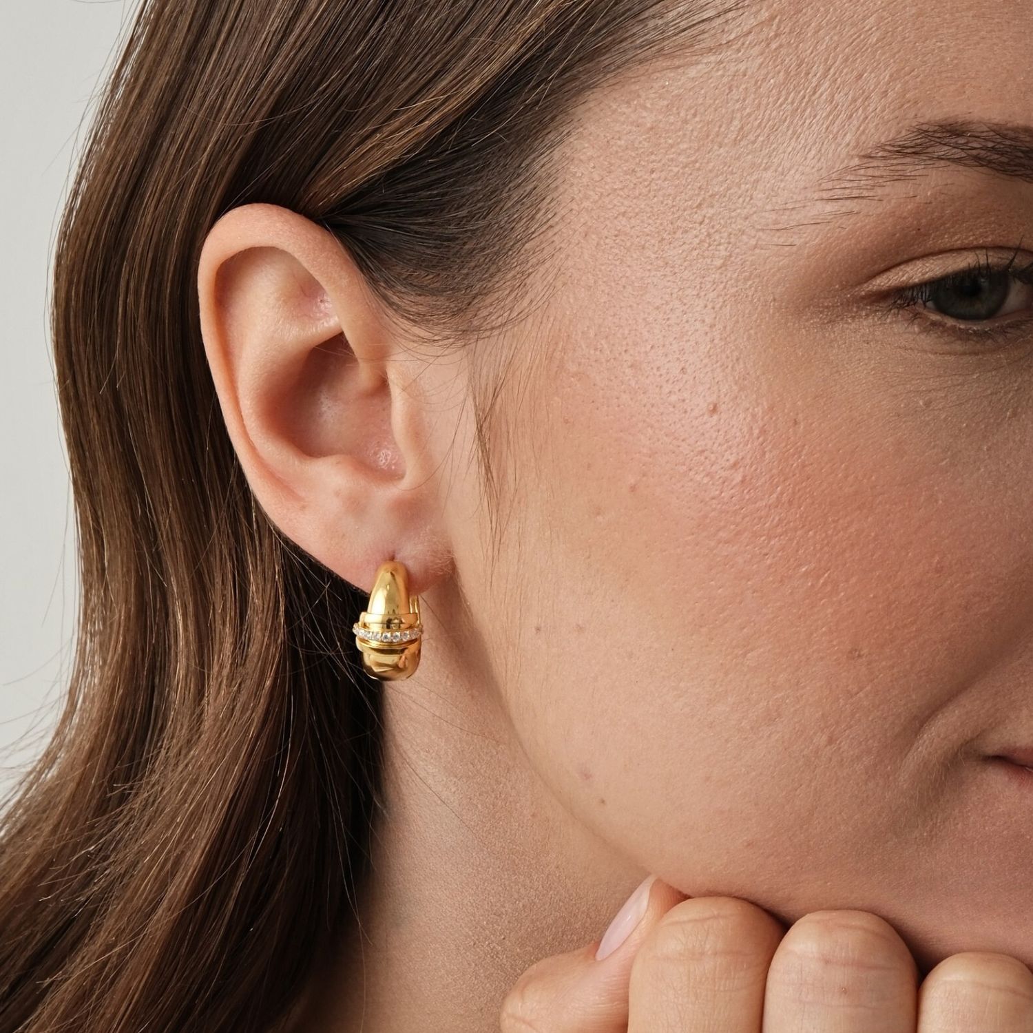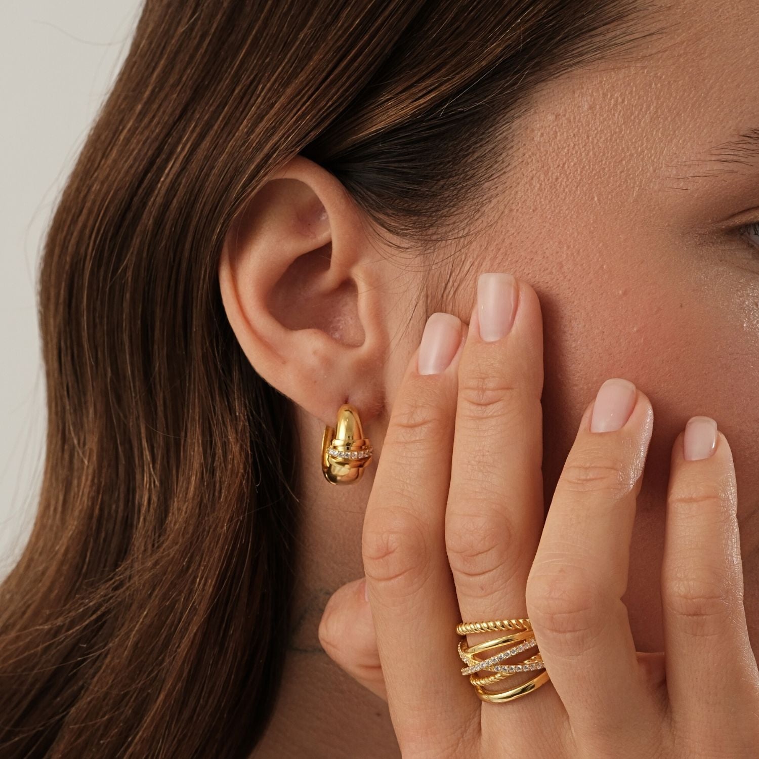 These Stone Mini Hoop Earrings Gold by Linya Jewellery are an elegant and modern accessory. Made from 925 sterling silver with 22k gold plating, their minimal size and sparkling stone details make them adaptable to every style. These handmade hoop earrings can be worn alone or combined with others, adding a touch of timeless elegance.