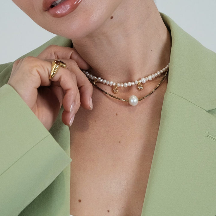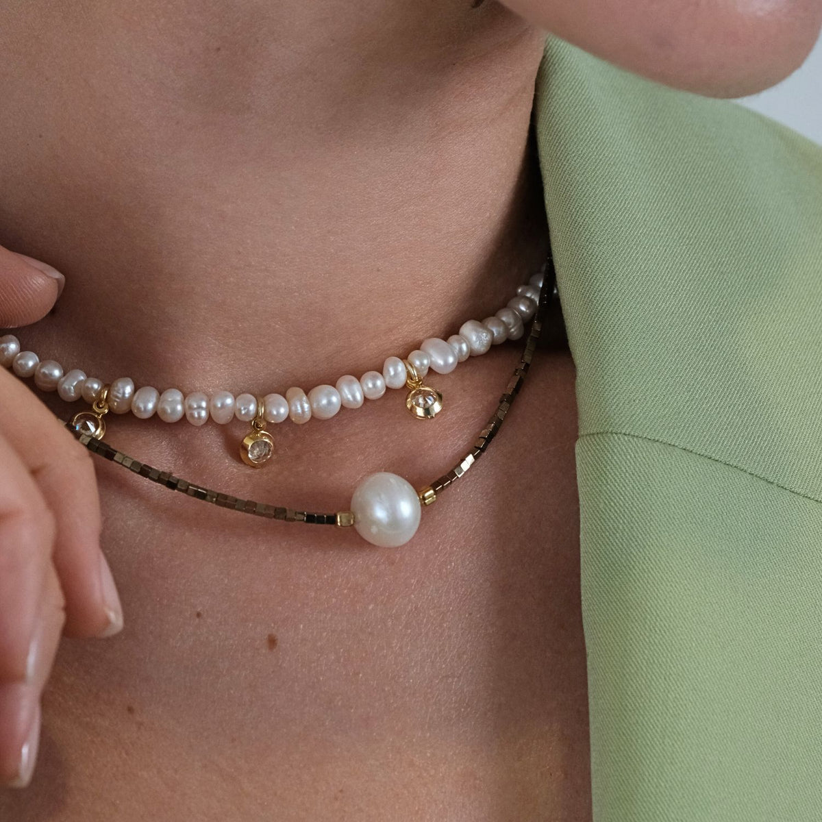 This Melia Pearl Mini Hematite Stone Necklace by Linya Jewellery is a stylish piece from their 2025 Summer Collection. It features a natural round pearl surrounded by tiny hematite stones, creating a modern and elegant look. Made from 925 sterling silver with 22k gold plating, this necklace is versatile for both everyday wear and special occasions.