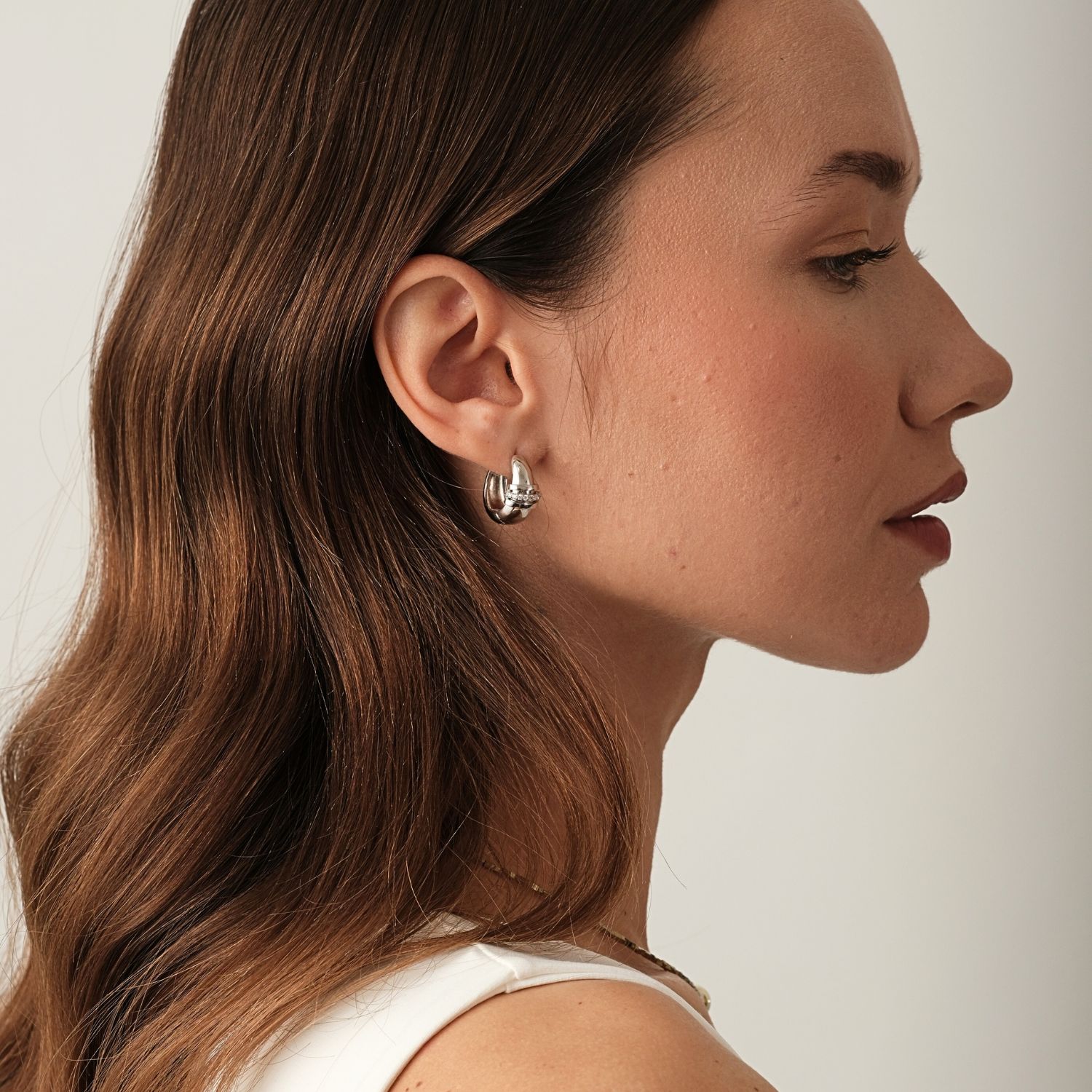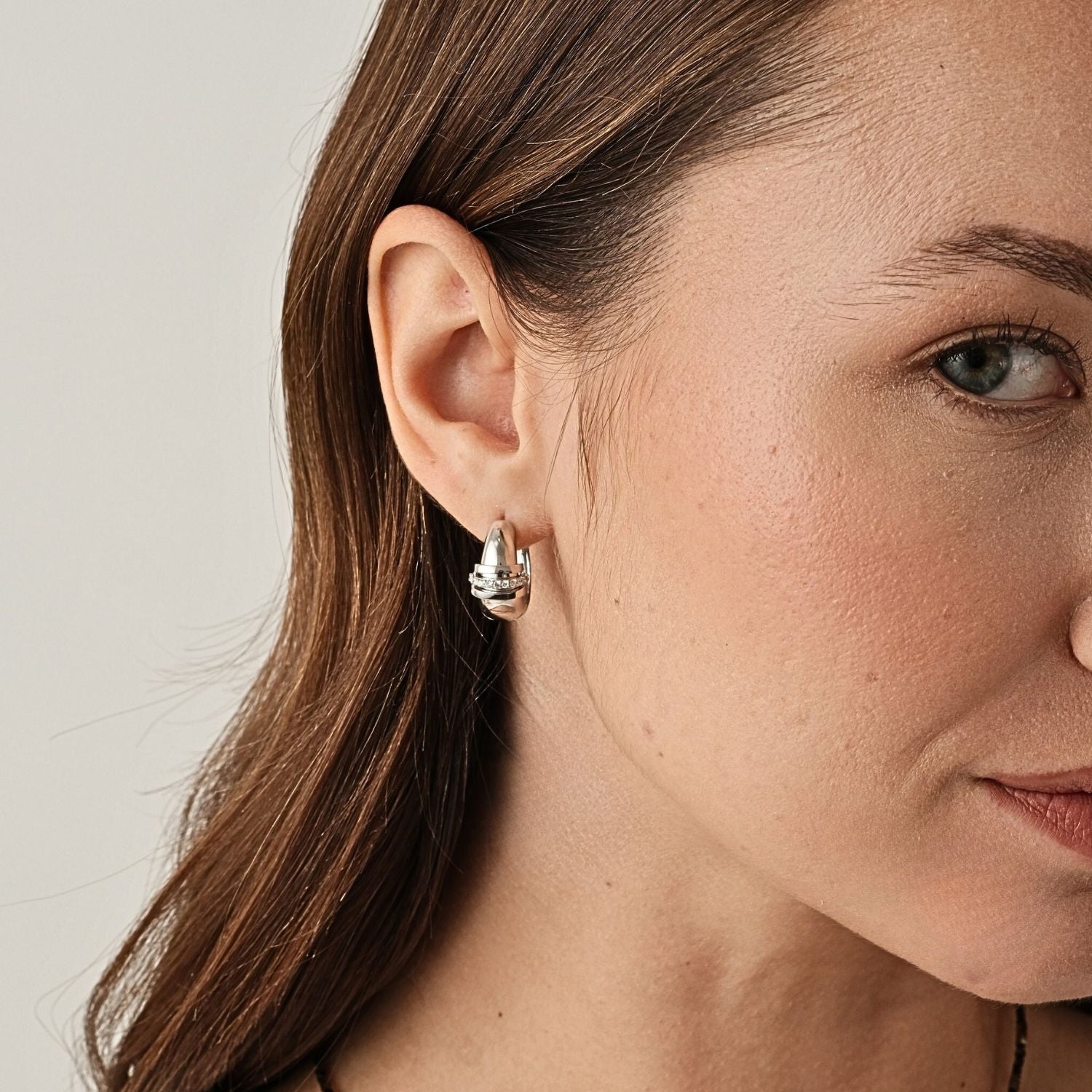 These Stone Mini Hoop Earrings Silver by Linya Jewellery are a perfect blend of elegance and modern design. Made of 925 sterling silver, their minimal size and sparkling stone details make them a versatile accessory for both daily use and special occasions. The compact form ensures comfortable wear, and the shine of the stones adds a touch of simple elegance.