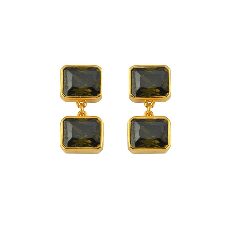 Green Double Crystal Stone Dangle Earrings