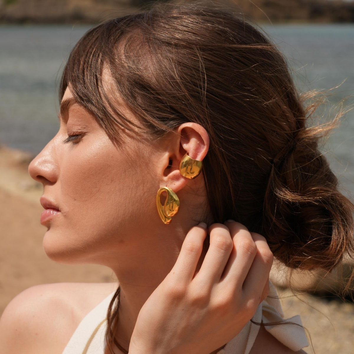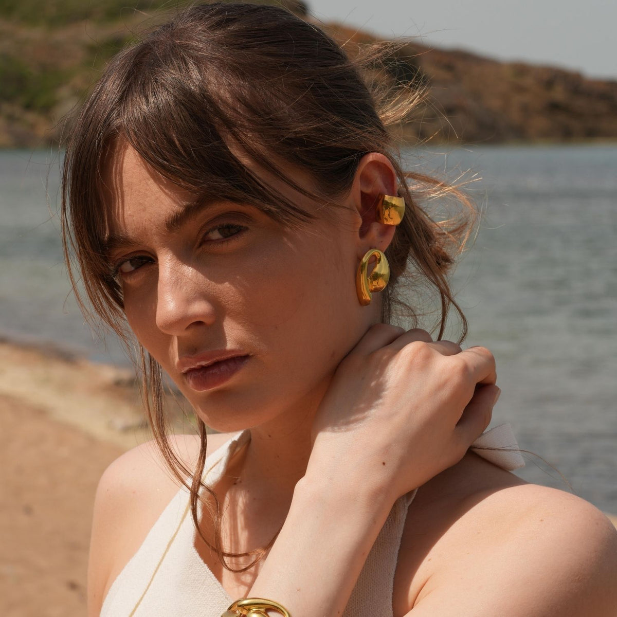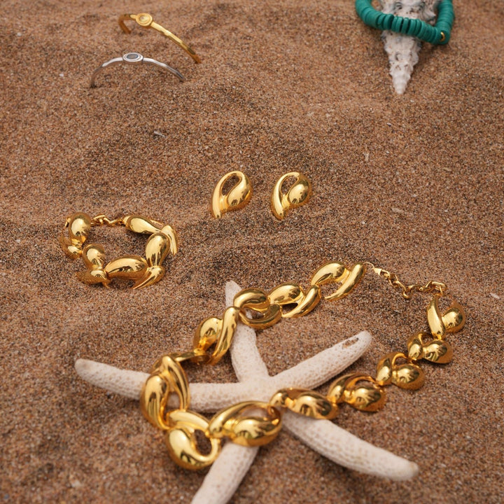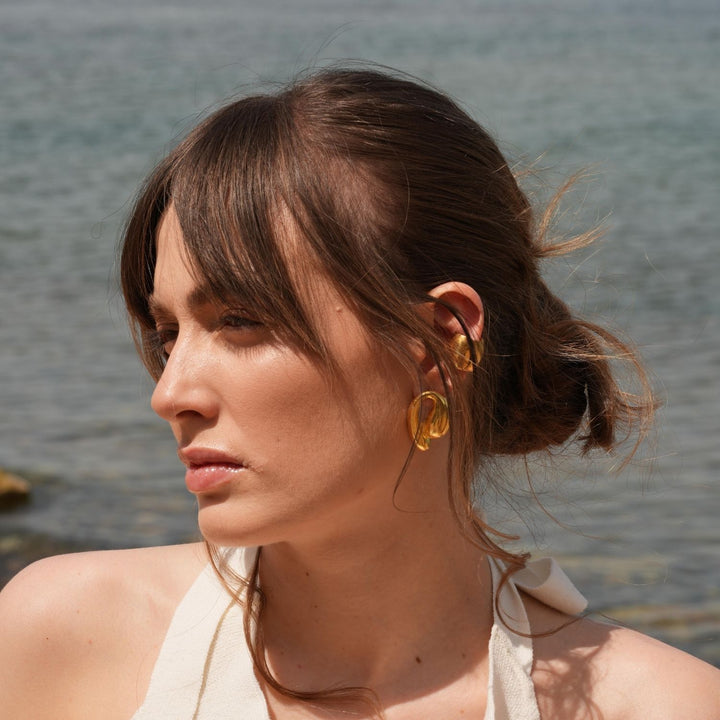 These Tina Big Earrings by Linya Jewellery are a bold and elegant addition to any collection. Designed with 22-carat gold plating on silver, these large earrings offer an eye-catching shine and charm. Their sophisticated details and substantial size make them a perfect statement piece that adds a touch of style to any look, especially when paired with the vibrant energy of summer.
