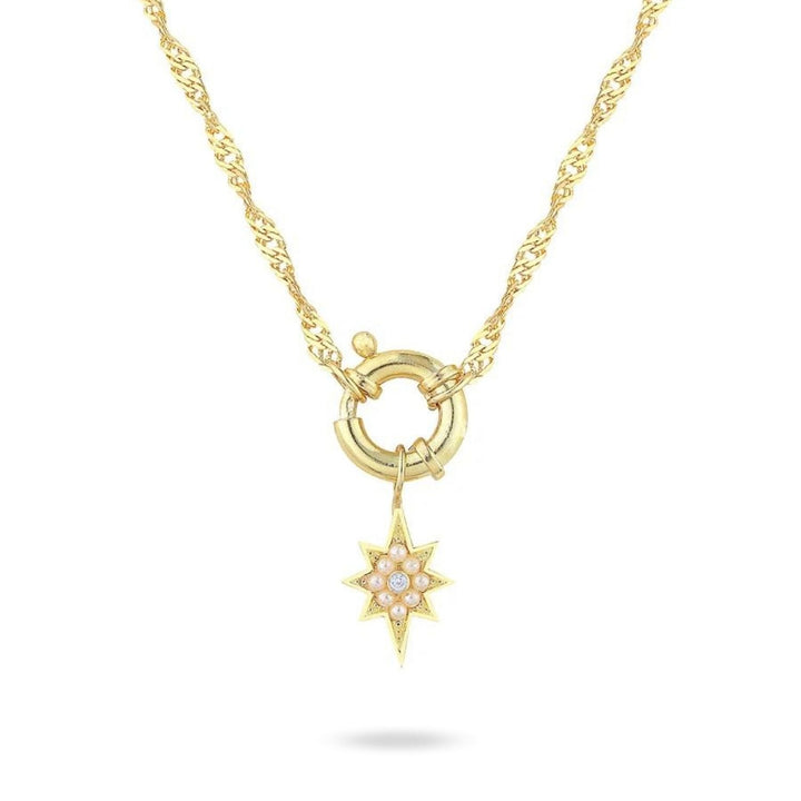 Pole Star Locked Pearl Chain Necklace