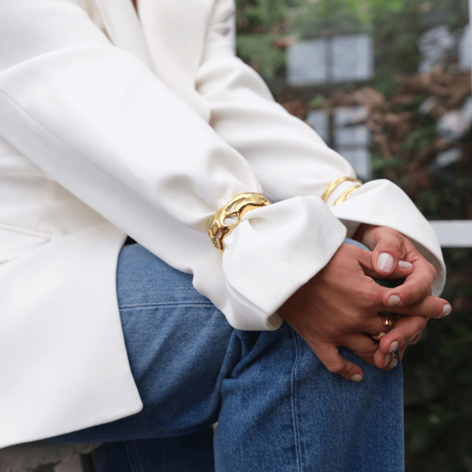 This cuff bracelet is made of high-quality materials and is handcrafted in a workshop. It is available in gold.