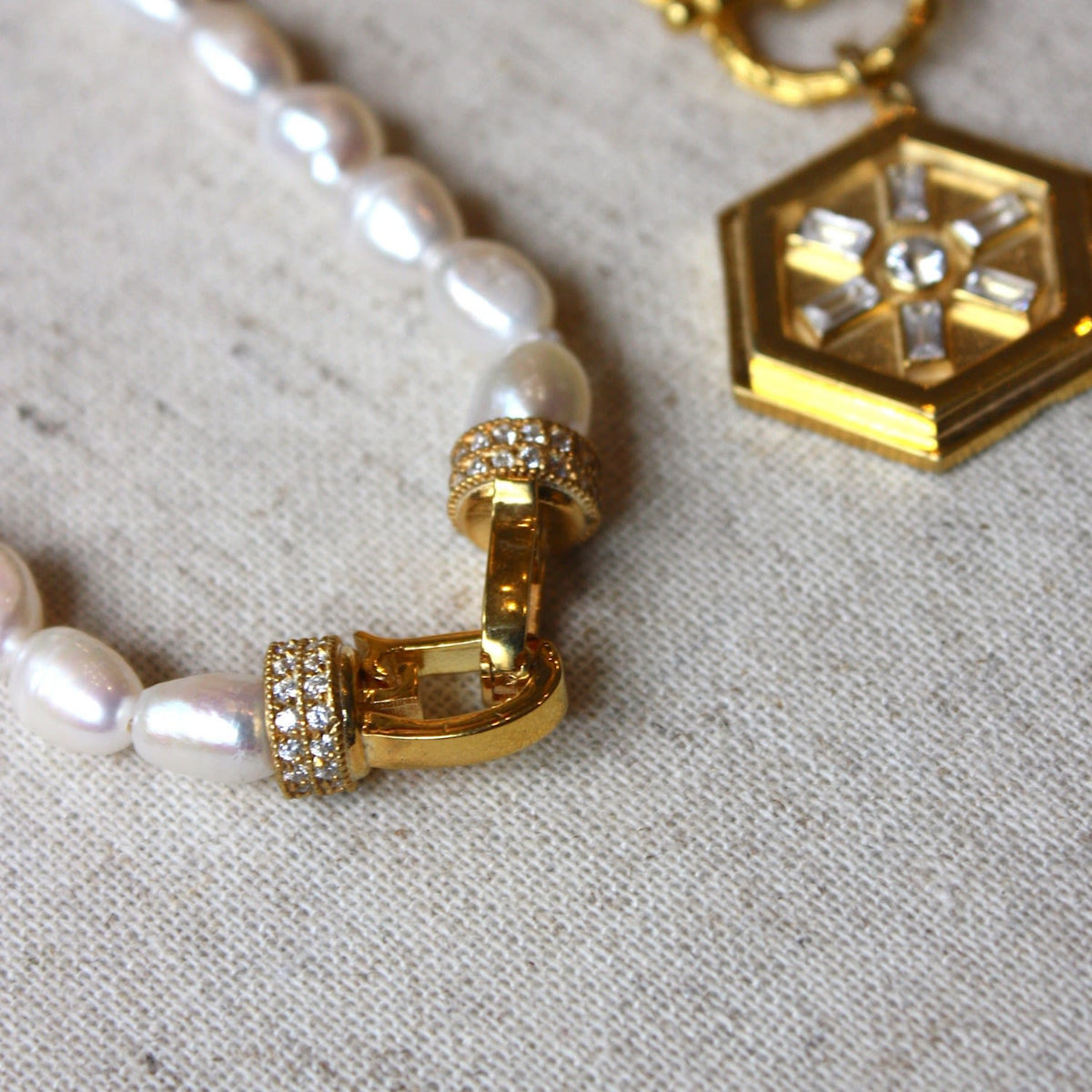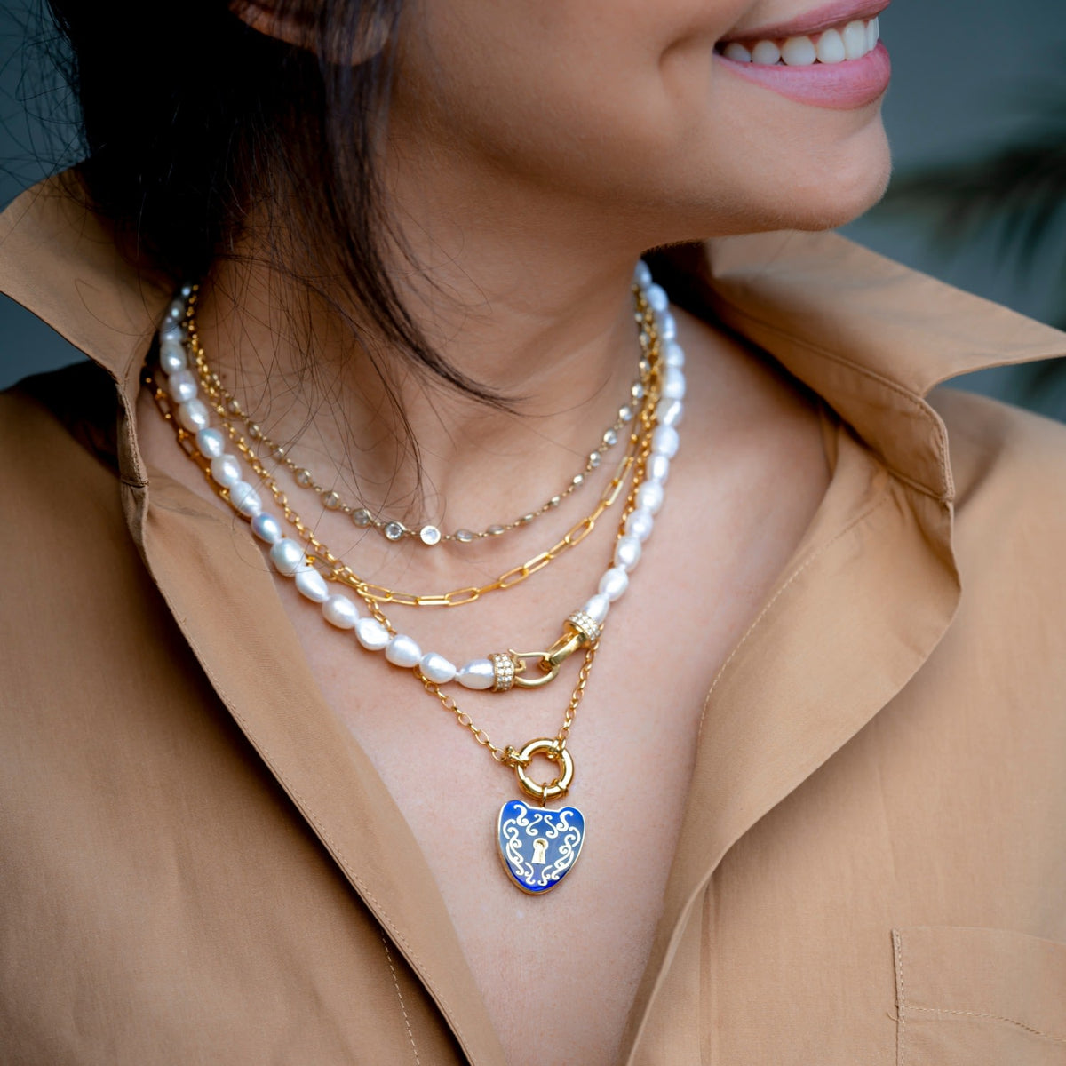 Lock Stone Pearl Necklace