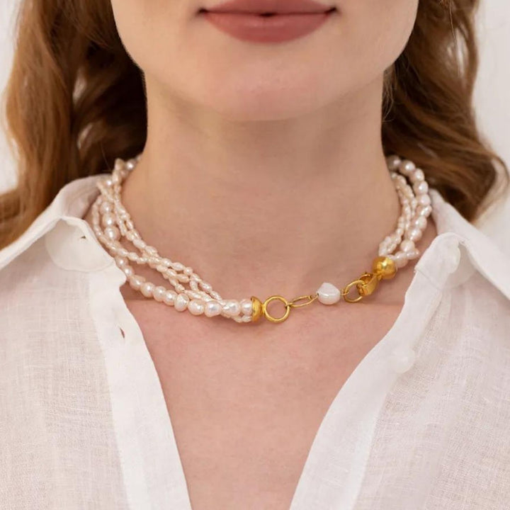 This Bera Ocean Pearl Necklace by Linya Jewellery is an elegant piece that carries the magic and unique beauty of the sea. It is designed with carefully selected ocean pearls, which are precious stones that naturally form in the depths of the ocean. The pearls are combined with high-quality silver and 22k gold plating, creating a luxurious and durable necklace that adds a touch of nature's magic to your style.