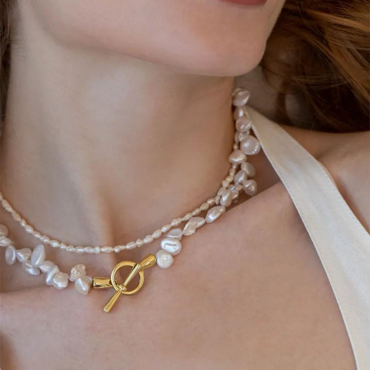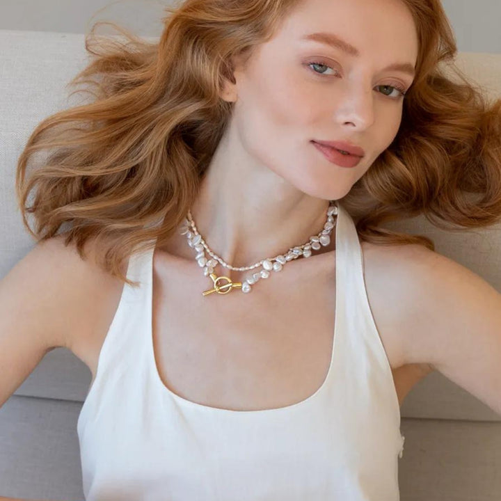 This Asymmetric Pearl Necklace by Linya Jewellery is a unique piece that reflects the natural beauty and originality of nature. It features asymmetrical natural baroque pearls that each have their own distinctive shape and fine details. The necklace is produced from 925 sterling silver with a specially protected 22k gold plating, ensuring its high quality and durability. This piece adds natural elegance and confidence to any style.
