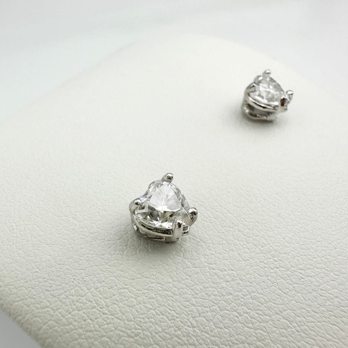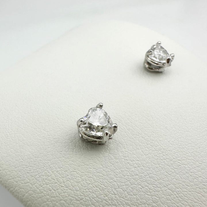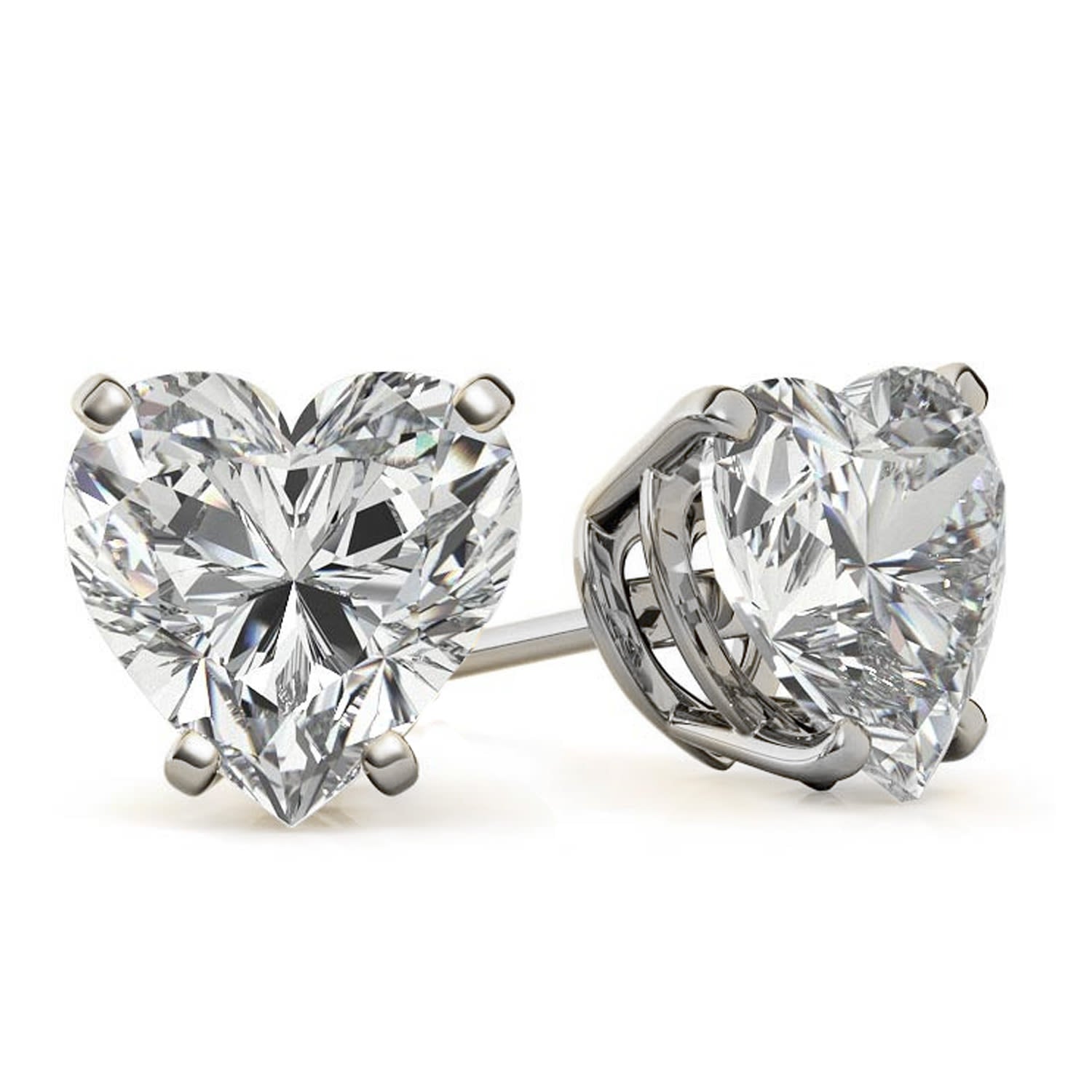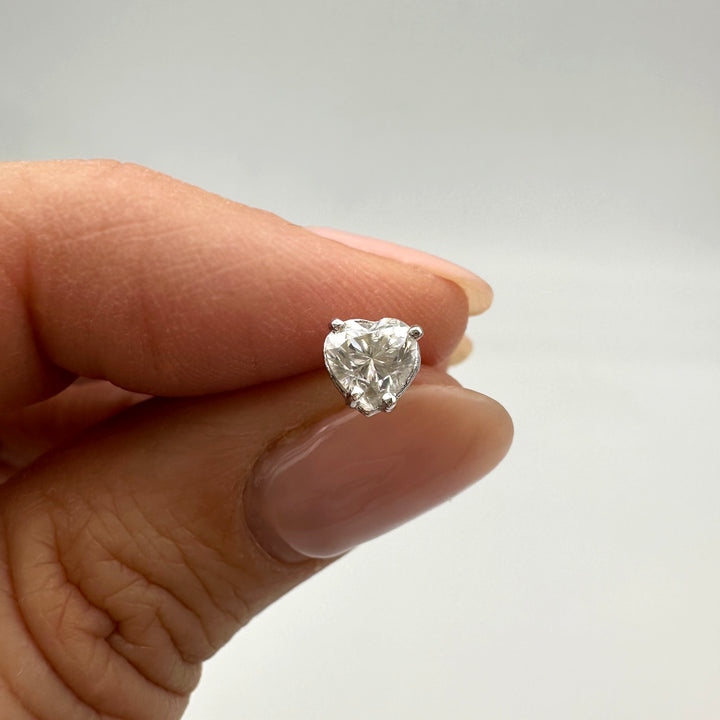 These studs are crafted from 10k white gold and feature 5mm heart-shaped Moissanite stones.