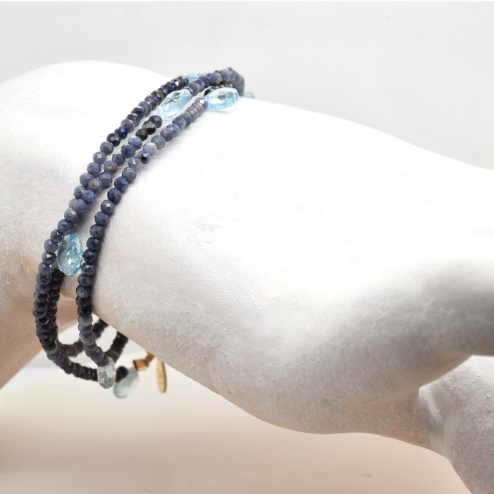 Triple Wrap Blue Sapphire And Topaz Necklace