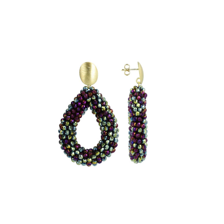 These Metallic Green Purple Earrings Berry Drop L by Lott. Gioielli are a striking and festive accessory. The vibrant combination of metallic green and purple offers a bold pop of color, while the brushed silver, gold-plated stud adds a touch of sophistication. Perfect for holiday celebrations or any special occasion, these earrings bring glamour and energy to your look.