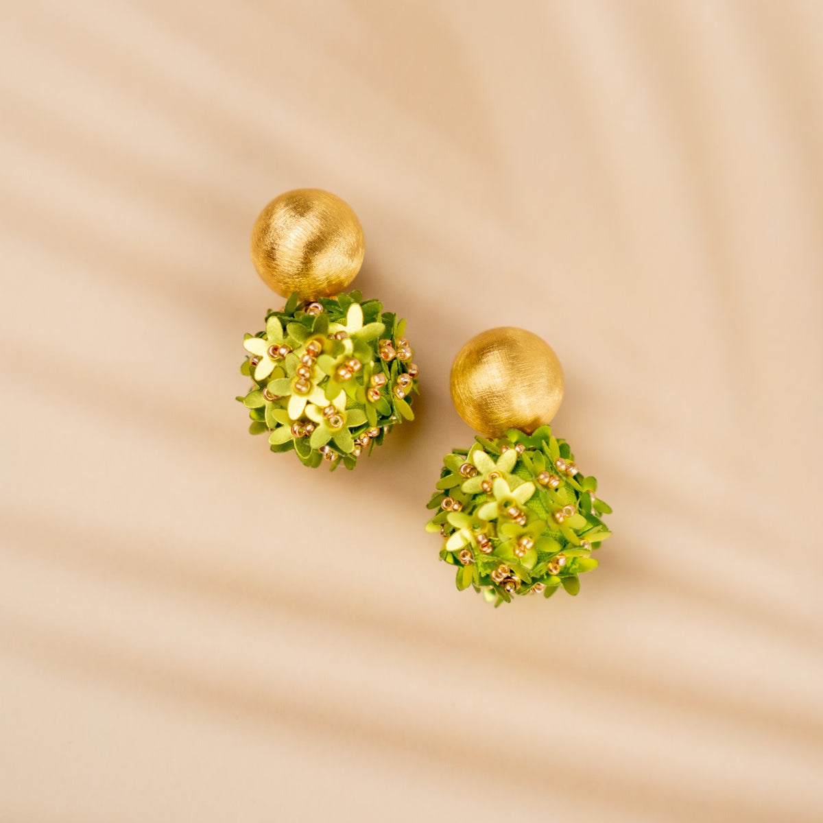 These earrings are crafted from a gold-plated base with sequins.