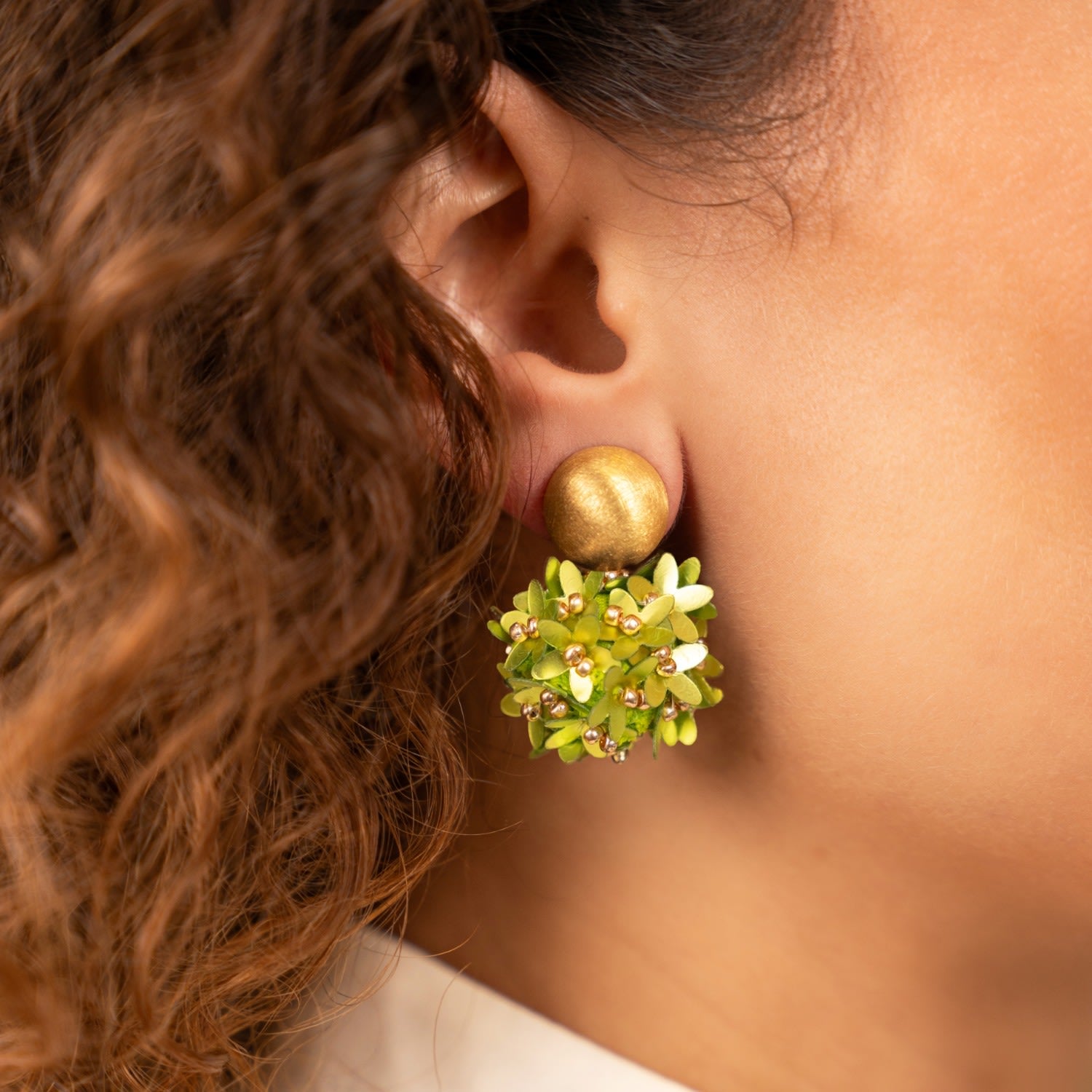 These Lime Earrings Daisy Flower Globe S by Lott. Gioielli are a fresh and playful statement accessory. Rendered in a vibrant lime hue and adorned with shimmering sequin flower elements, they bring a touch of playful elegance to any look. The sophisticated design and sparkling finish create a luxurious yet subtle presence, making them a must-have addition to your collection for a fun and stylish aesthetic.