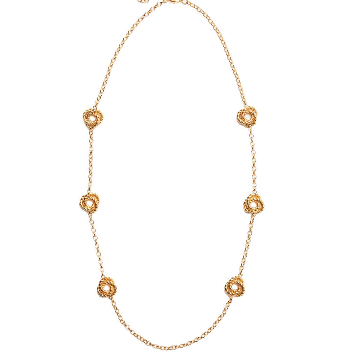 This Gordian Knot Necklace by Lovard is a simple yet sophisticated chain necklace. The knotted chain adds a polished finishing touch to your look. This necklace can be worn on its own or layered with other necklaces for a bolder statement.