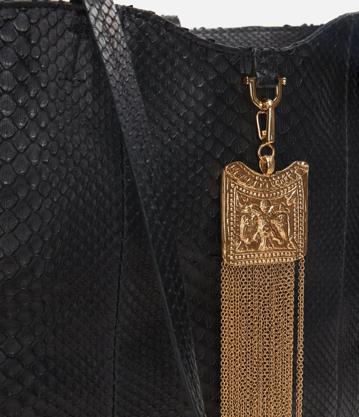 This Double Eagle Tassel Charm - Silver by Lovard is an eye-catching and unique accessory. Inspired by a Native American totem carving, this piece features a double eagle charm with a chain tassel. This charm is sure to be a stunner, whether worn on its own or with other pieces.