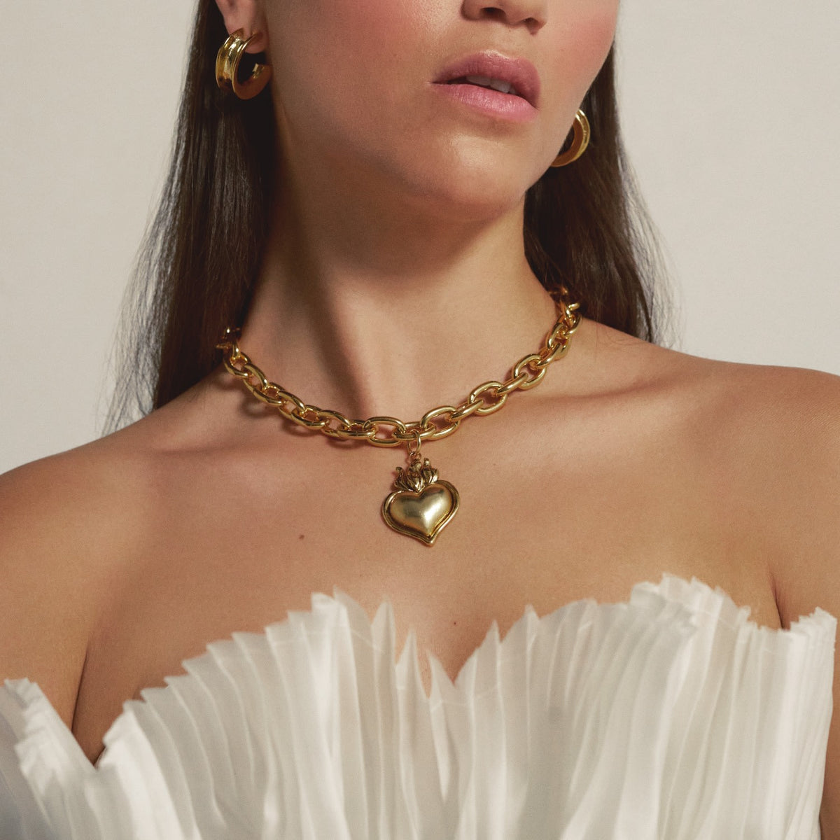 Smooth Hearts Aflame Chunky Chain Necklace - Gold