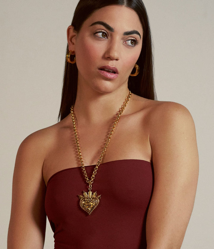 This pendant necklace is a statement pendant necklace that was molded by hand and then cast in 18K gold plate.
