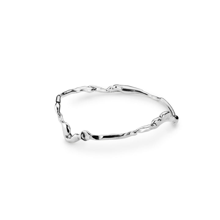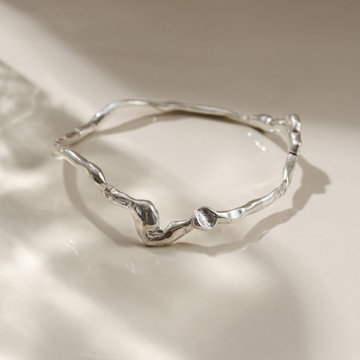 Handmade in the UK from 100% recycled sterling silver. It is Hallmarked for quality and features a unique wiggly shape.