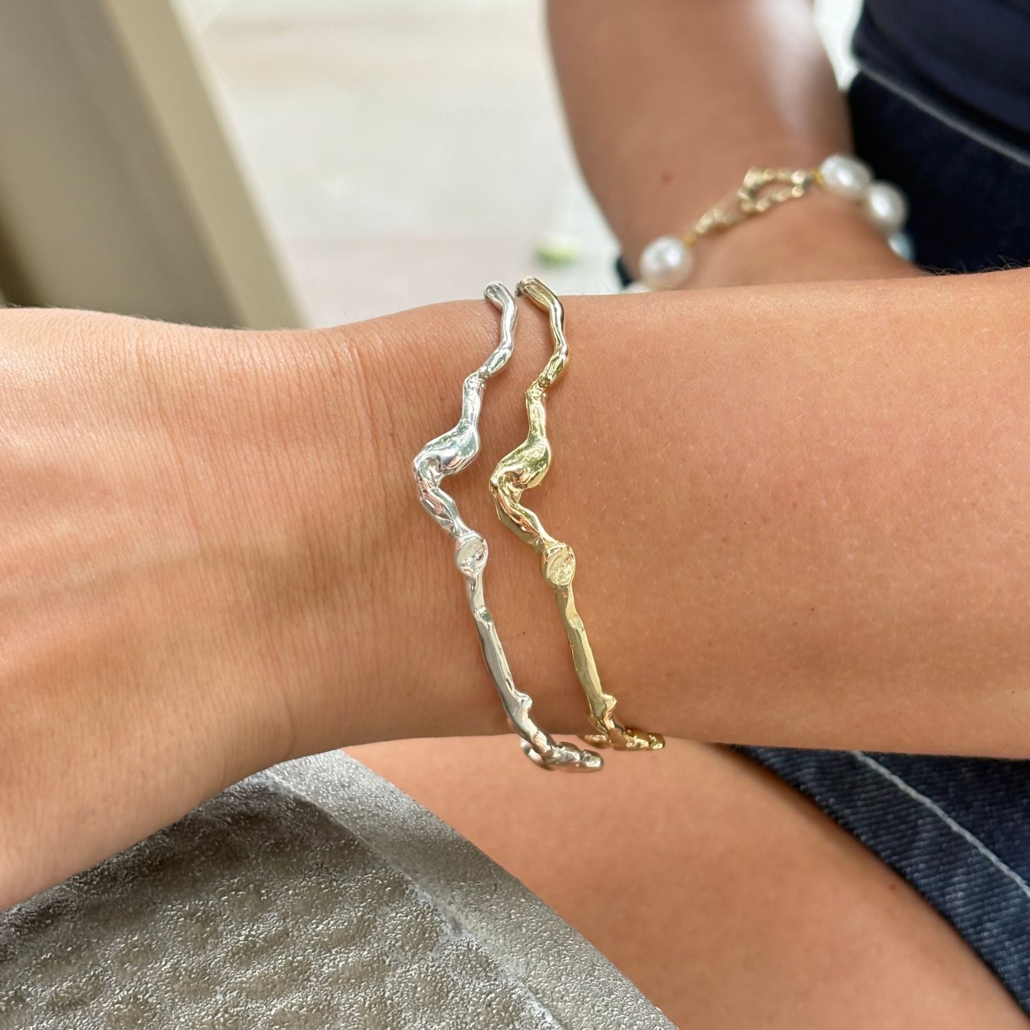 This Solid Sterling Silver Wiggle Bangle by Lulu and Boo Jewellery is a unique and delightful design. The wiggly shape symbolizes the ups and downs of life's journey, making it a beautiful and meaningful piece. Each bangle is made by hand in the UK from solid recycled sterling silver, reflecting light in a stunning way that is sure to attract compliments. This is a durable and authentic piece of forever jewelry.