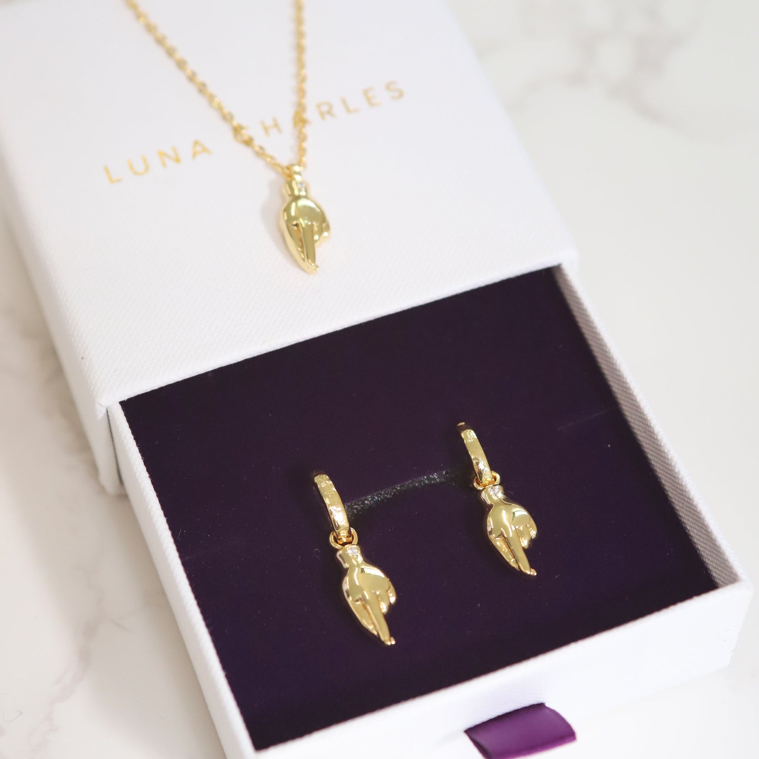 Fingers Crossed Gift Set - Earrings & Necklace - Gold Plated