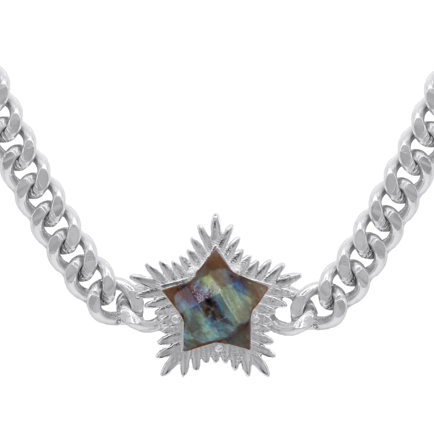 Odette Labradorite Spiky Star Choker Necklace | Sterling Silver