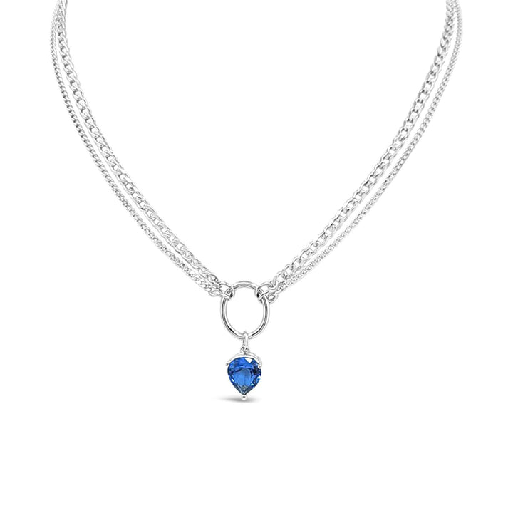 This necklace is made from sterling silver 925 with 14k gold plating and features a synthetic sapphire.