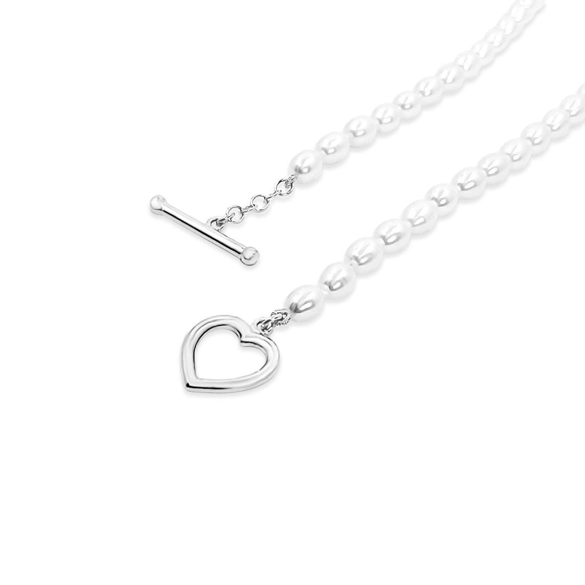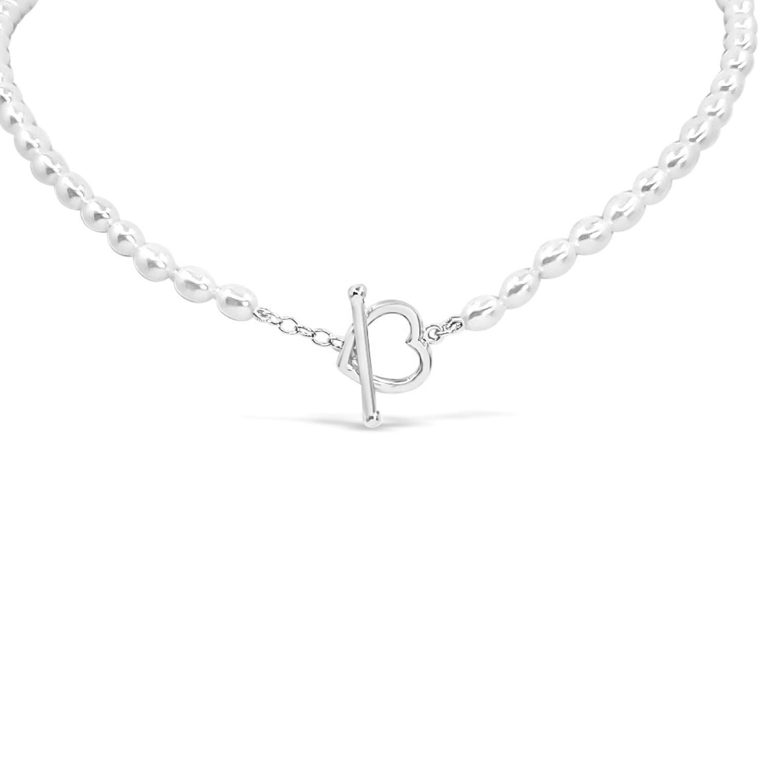 Heart Toggle Clasp With Freshwater Pearls Necklace