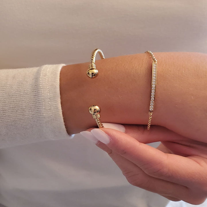 This cuff bracelet is crafted from 14k gold-plated sterling silver 925.