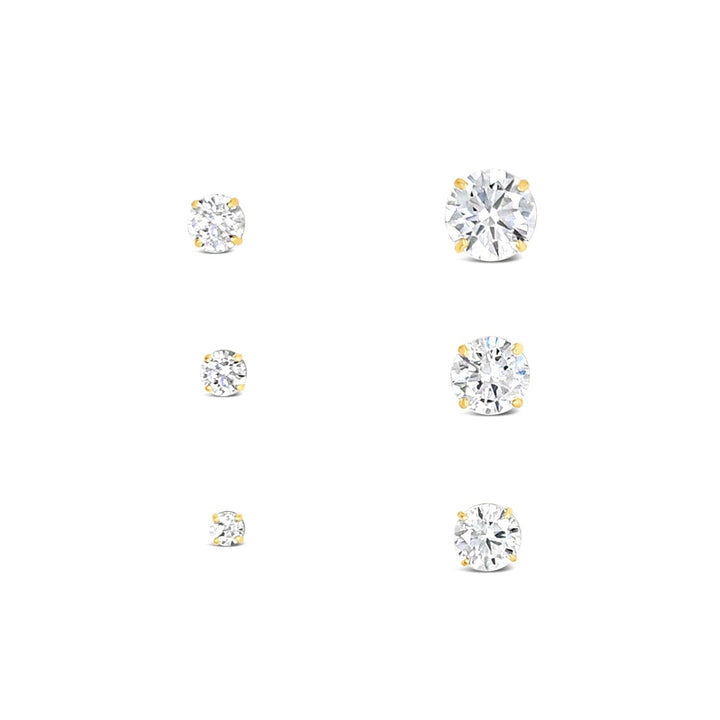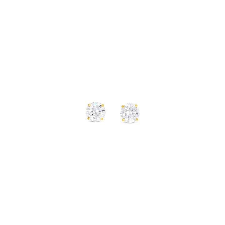 These earrings are crafted from 10K gold and feature 7mm round-cut cubic zirconia. They are also available in 10k white gold.