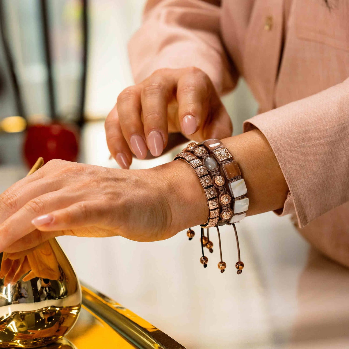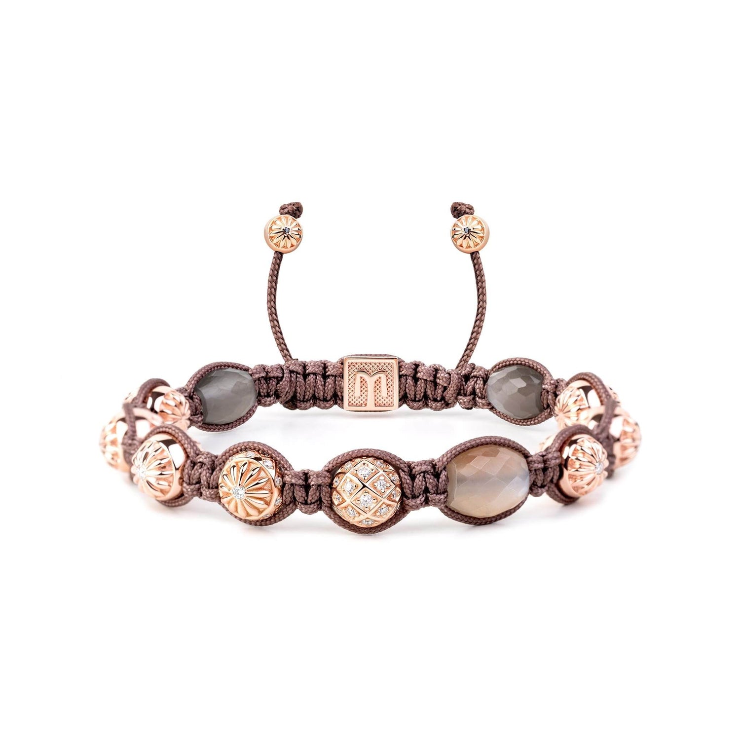 Macrame Braided Bracelet With Faceted Moonstones In Rose Gold - The Maverick