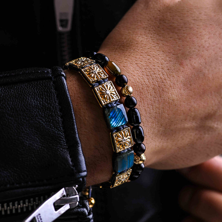 Macrame Bracelet In Gold With Labradorite & Grey String - The Raydancer