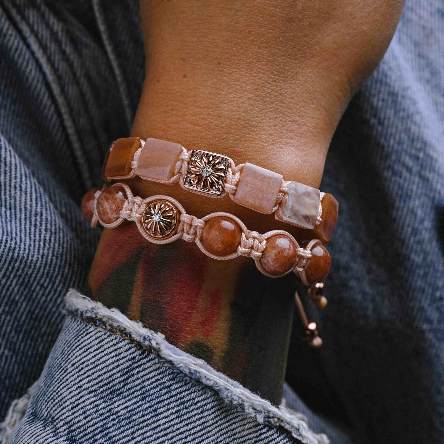 Flat-Bead Bracelet In Rose Gold With Peach Moonstone & Rainbow Moonstone - Sakura Salsa