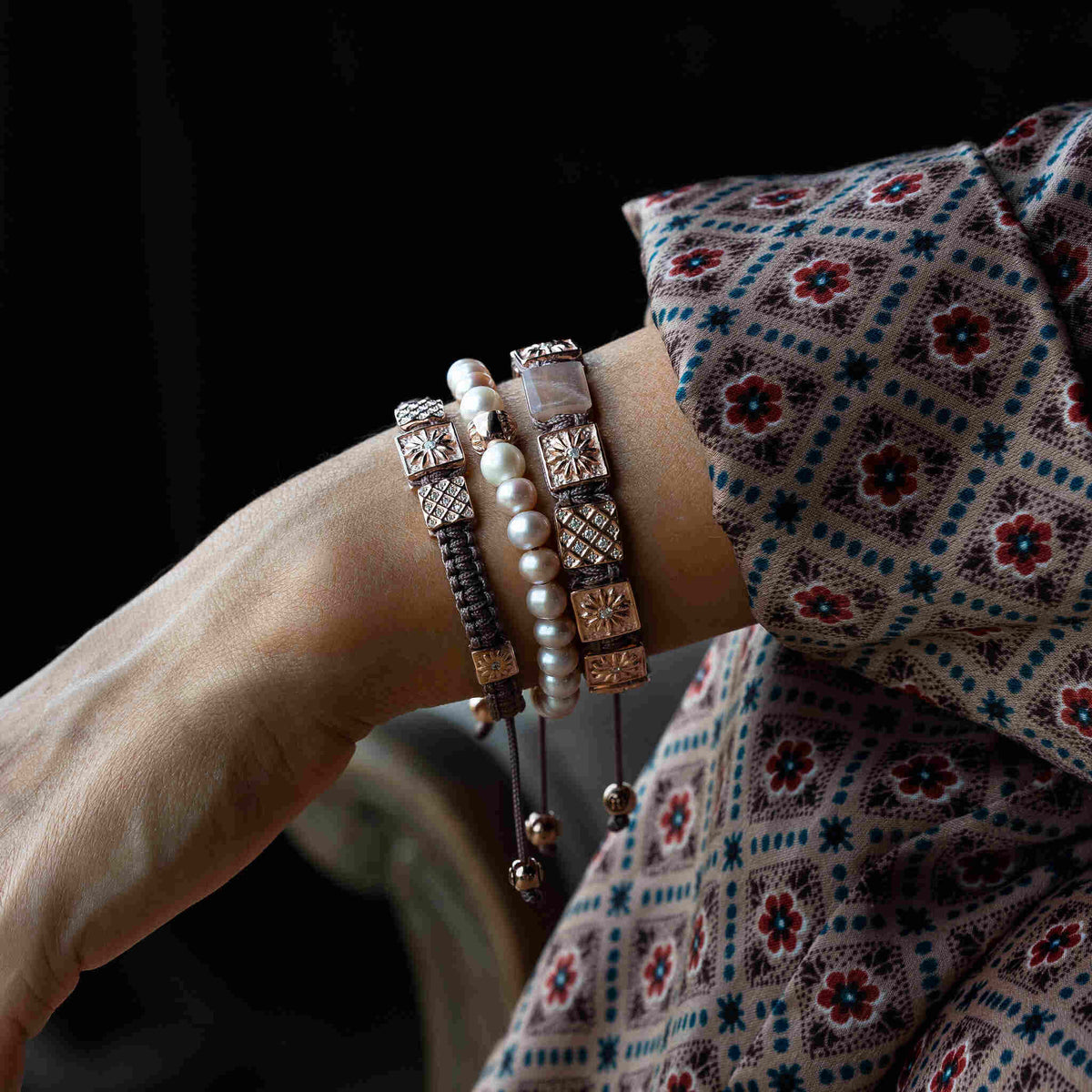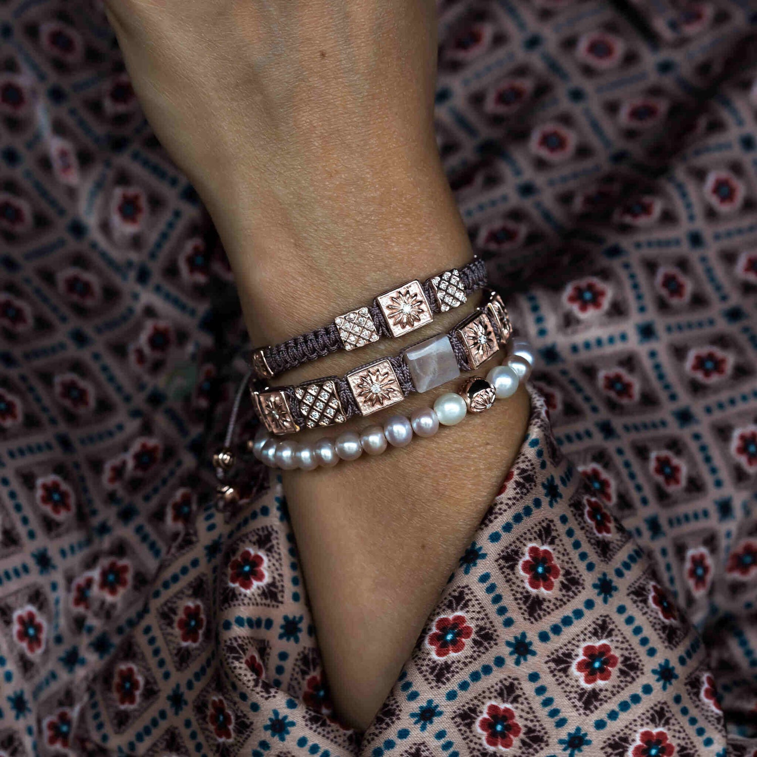 Dark Mauve Macrame Bracelet In Rose Gold - The Ember Grace