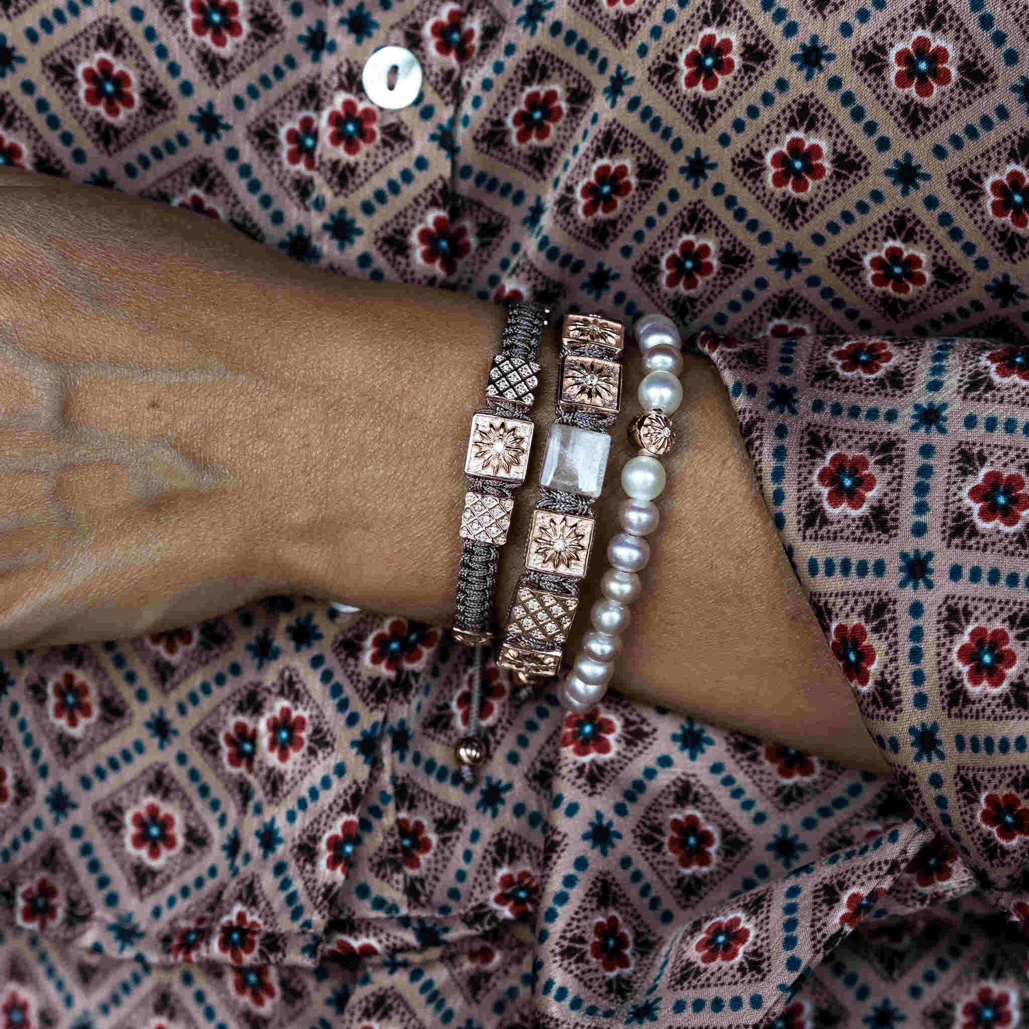This Dark Mauve Macrame Bracelet by Mahigan is a unisex piece that symbolizes inner fire and graceful strength. The macrame braided design with a sterling silver bead and white moissanite stones creates a sophisticated and contemporary look. The peach moonstone bead, known for its calming properties, adds a touch of emotional balance and elegance. It’s a unique, one-of-a-kind bracelet that merges symbolic meaning with modern craftsmanship.