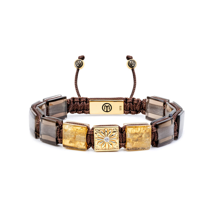 Macrame Bracelet In Gold With Smoky Quartz & Citrine