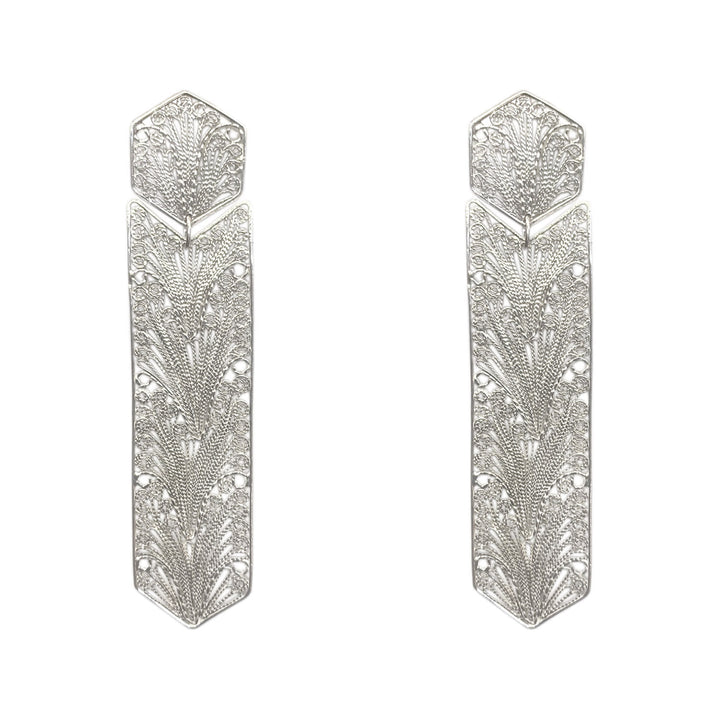 These Talia Xl Silver Earrings by Mamba are a part of a collection of magical totems and gypsy love. These handmade earrings are a bold and unique statement piece. They are perfect for those who want a piece of magic and artisan production in their collection.
