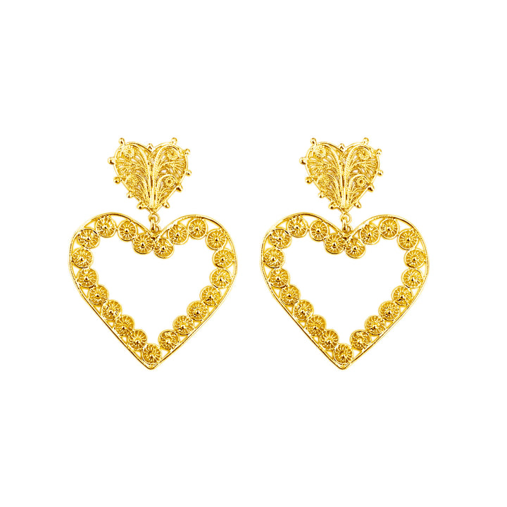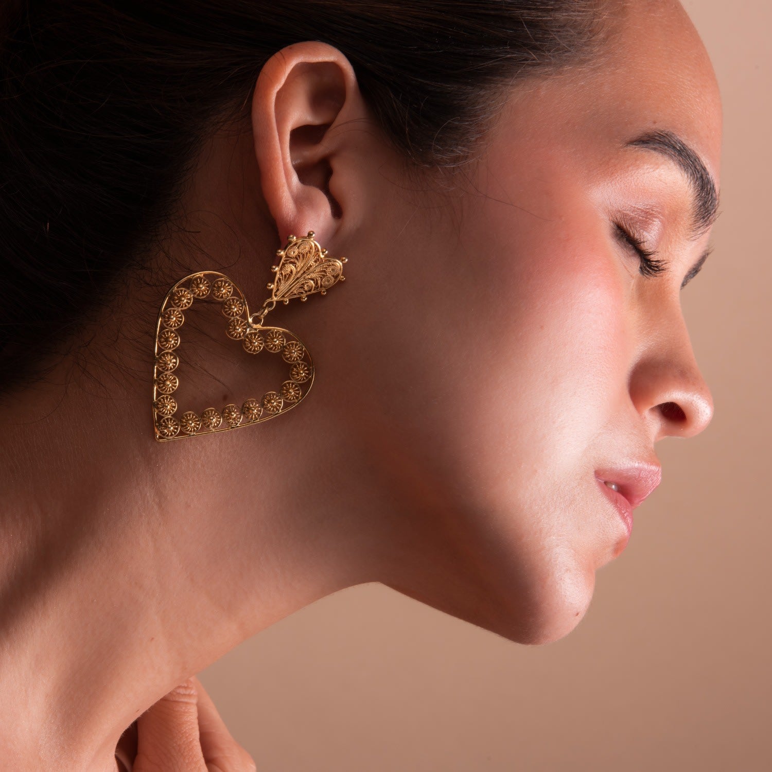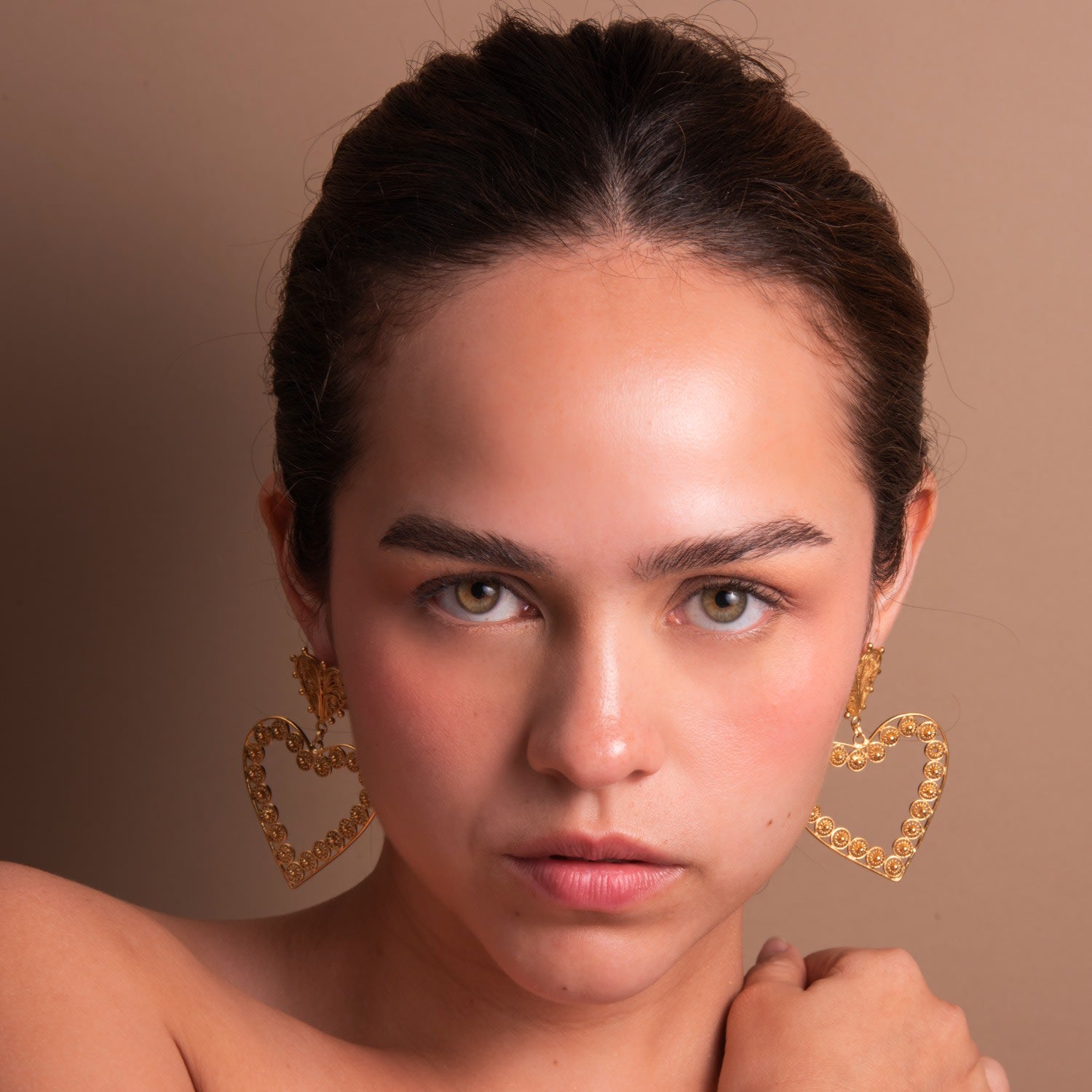 These Milagros Silhouette Golden Earrings by Mamba are a handcrafted accessory inspired by a Mexican tradition about doing things with the heart in hand. They are a magical, artisanal product.