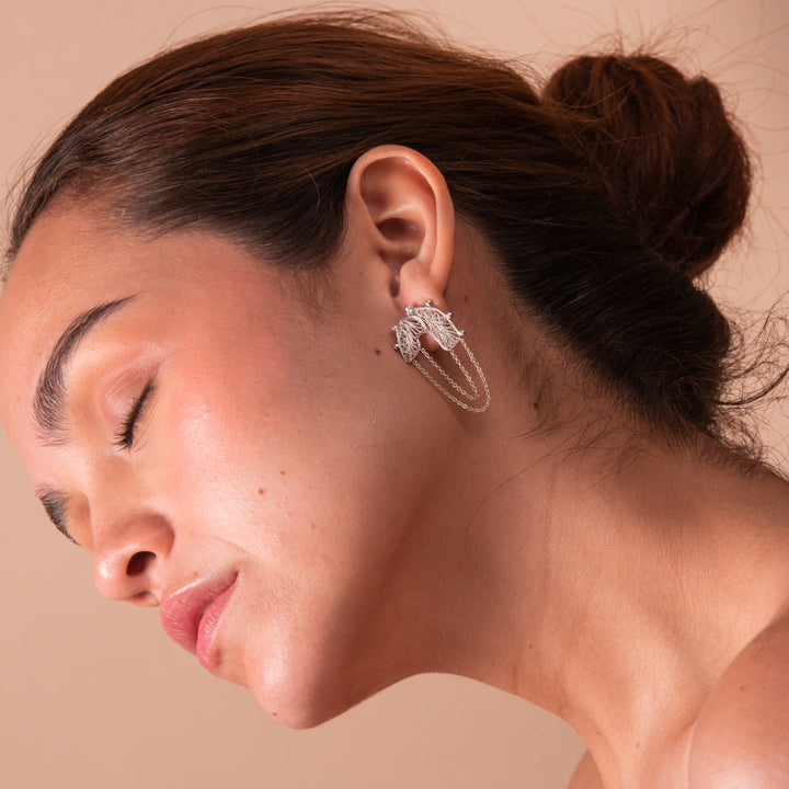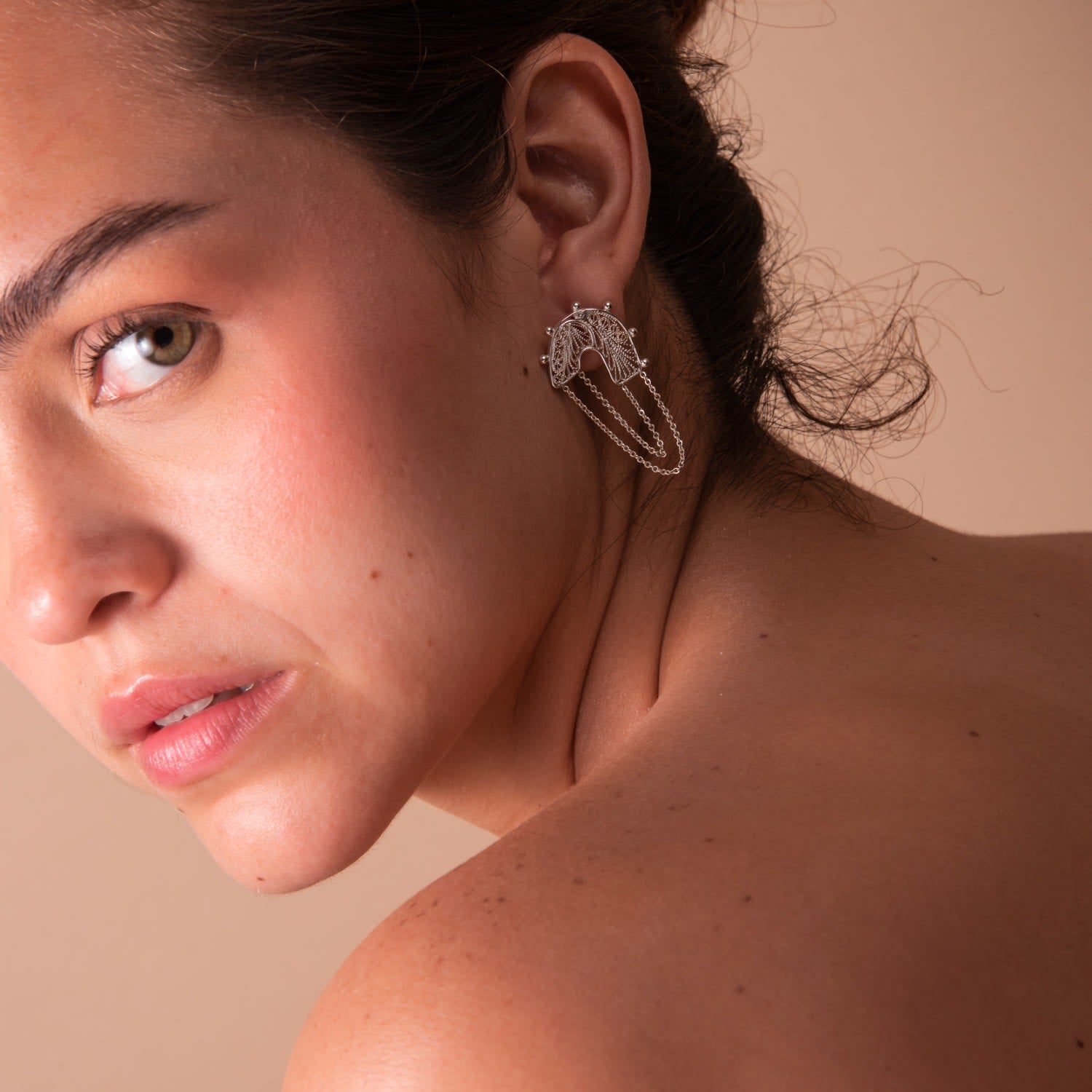These Candelita Alma Golden Earrings by Mamba are a homage to the wild beauty of the tropics. Handcrafted with exceptional artisan skill, each pair has subtle variations that add to its unique charm, embodying the magic of artisanal production. These earrings are a celebration of nature's organic elegance and add a touch of bohemian luxury to your style.