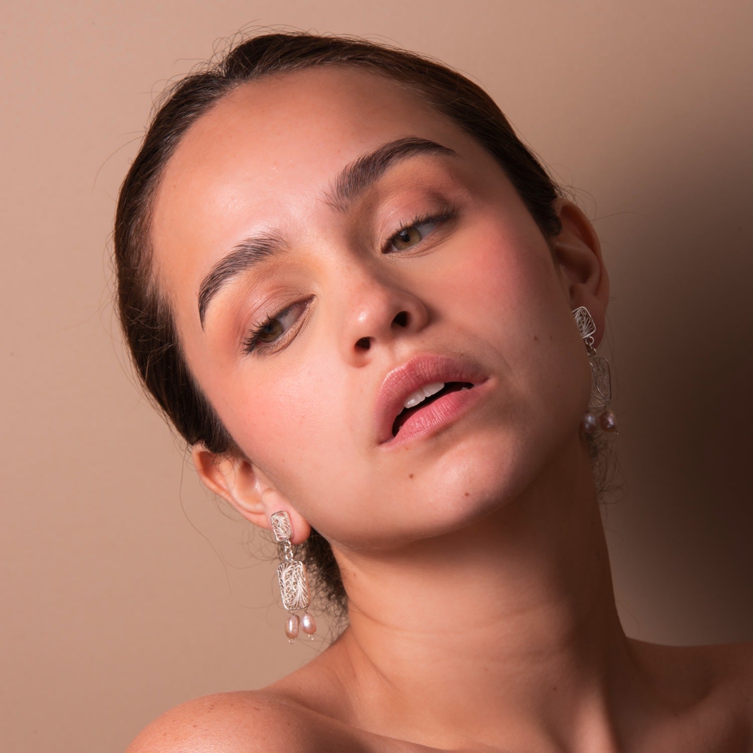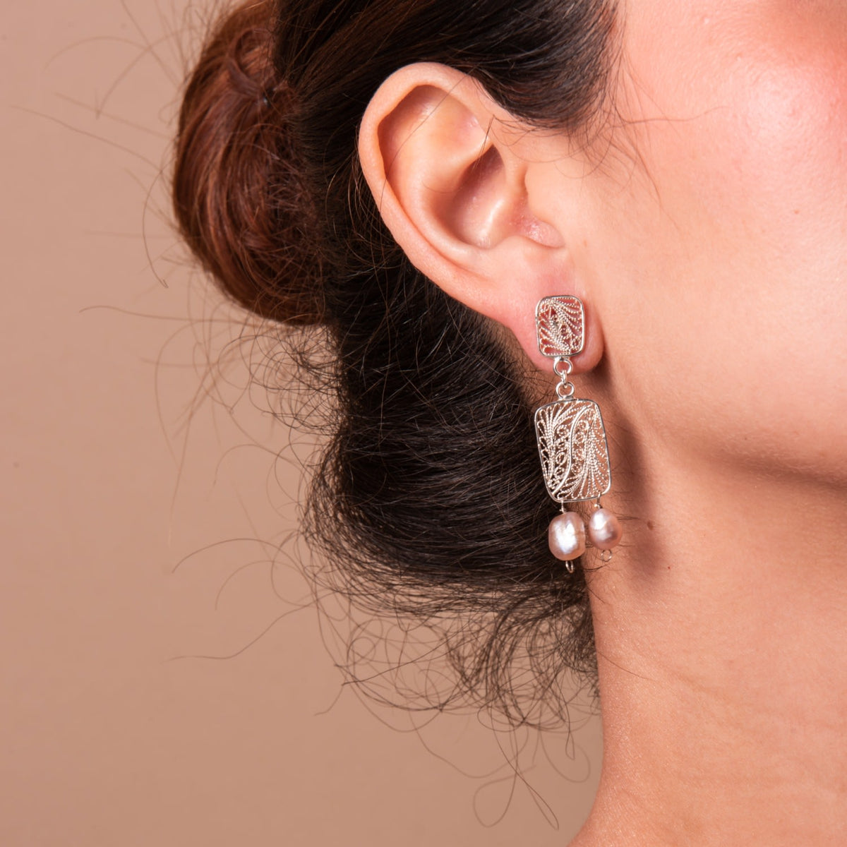 These Candelita Two Pearl Silver Earrings by Mamba are a beautiful piece from a collection that celebrates the tropics and exceptional craftsmanship. The delicate design, featuring two pearls, adds a touch of classic elegance. As a handmade product, each pair has slight variations, a testament to the artisan's touch and Mamba's unique production.