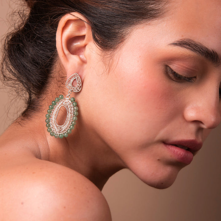 These Cadelita With Jadeite Stone Silver Earrings by Mamba are a testament to the beauty of the tropics and the artistry of human hands. The elegant design features a unique jadeite stone, adding a touch of serene, natural beauty. Each handmade piece is subtly unique, a testament to the exceptional craftsmanship that created it.
