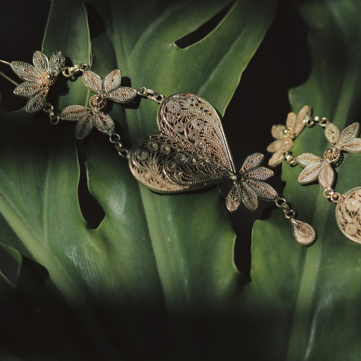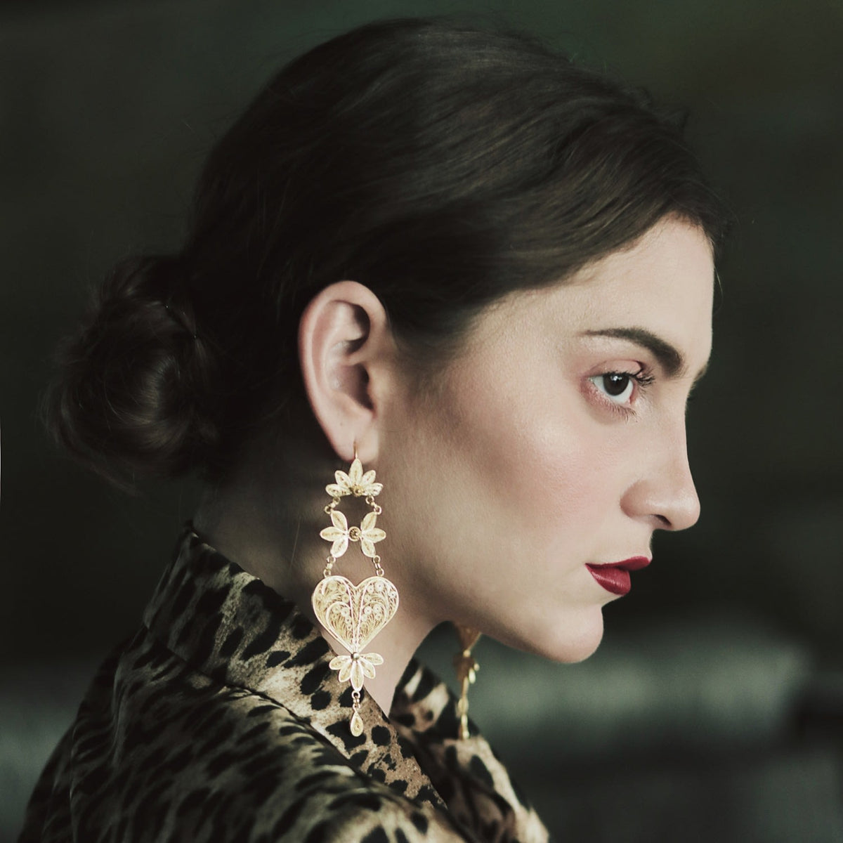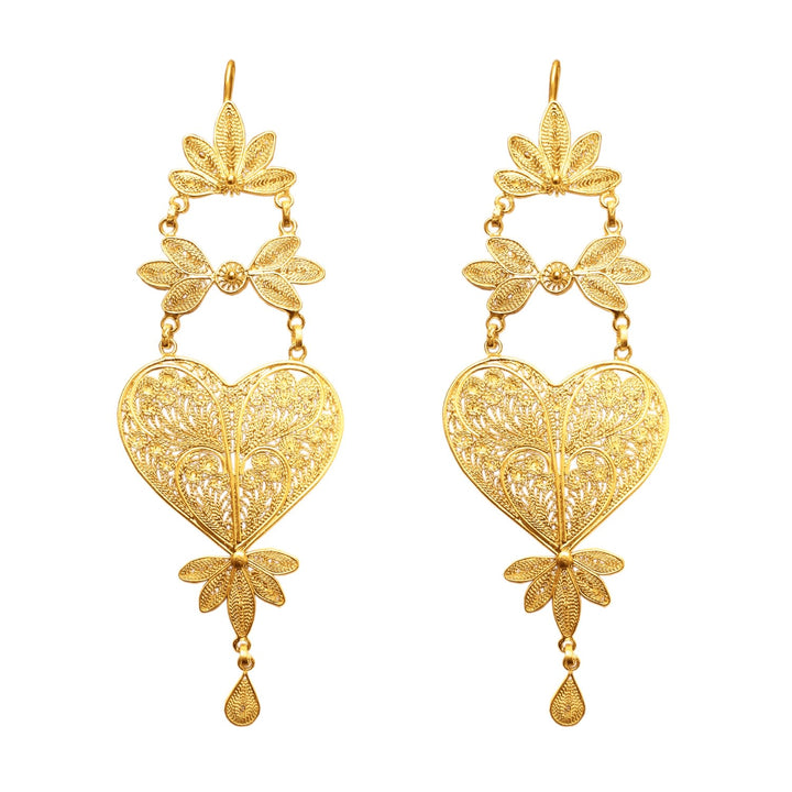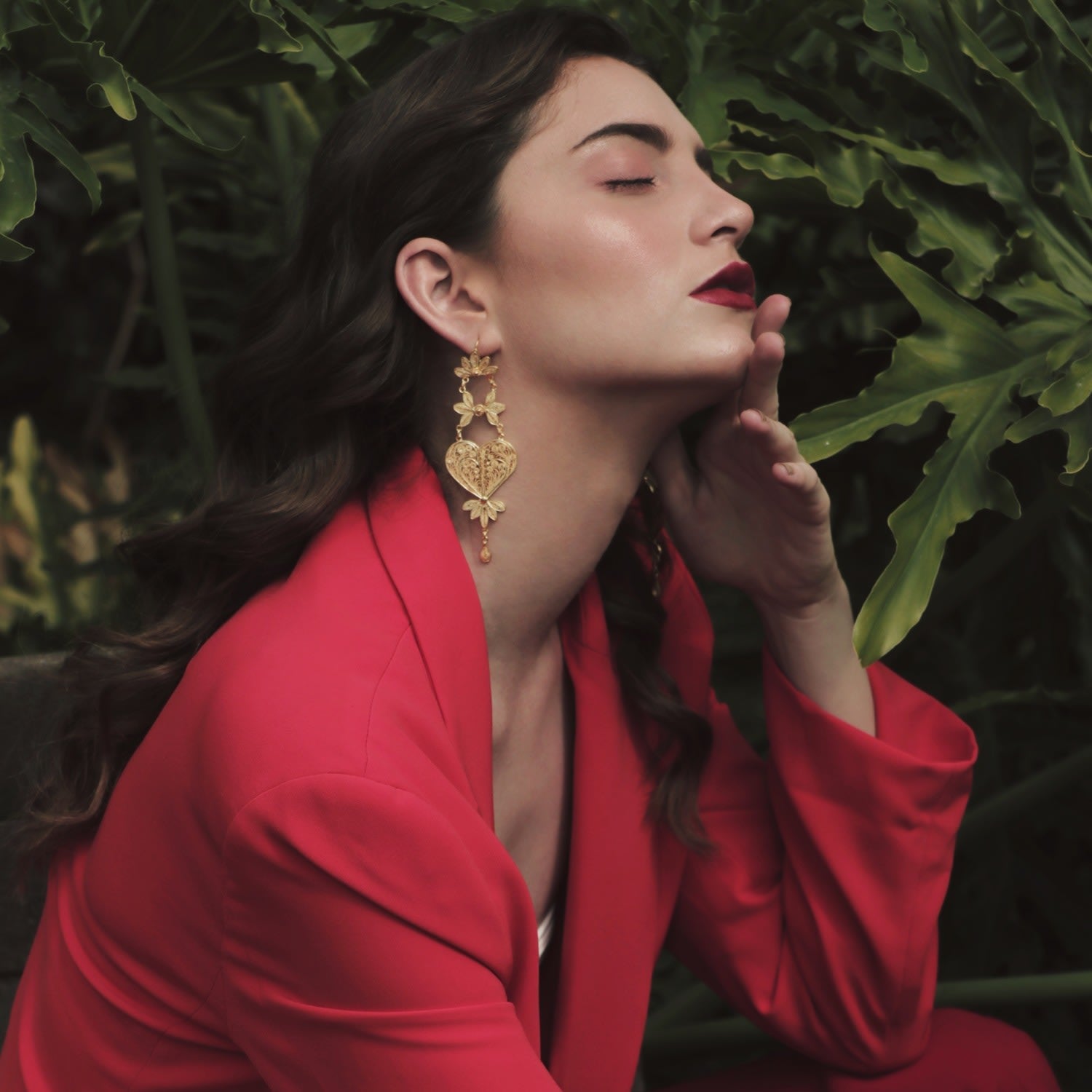 These Milagros Vi by Mamba are a unique and powerful accessory. Inspired by the "milagritos" of Mexico, these handmade chandelier earrings feature a design of rays that come from the heart. They are a statement piece that embodies valor and strength.