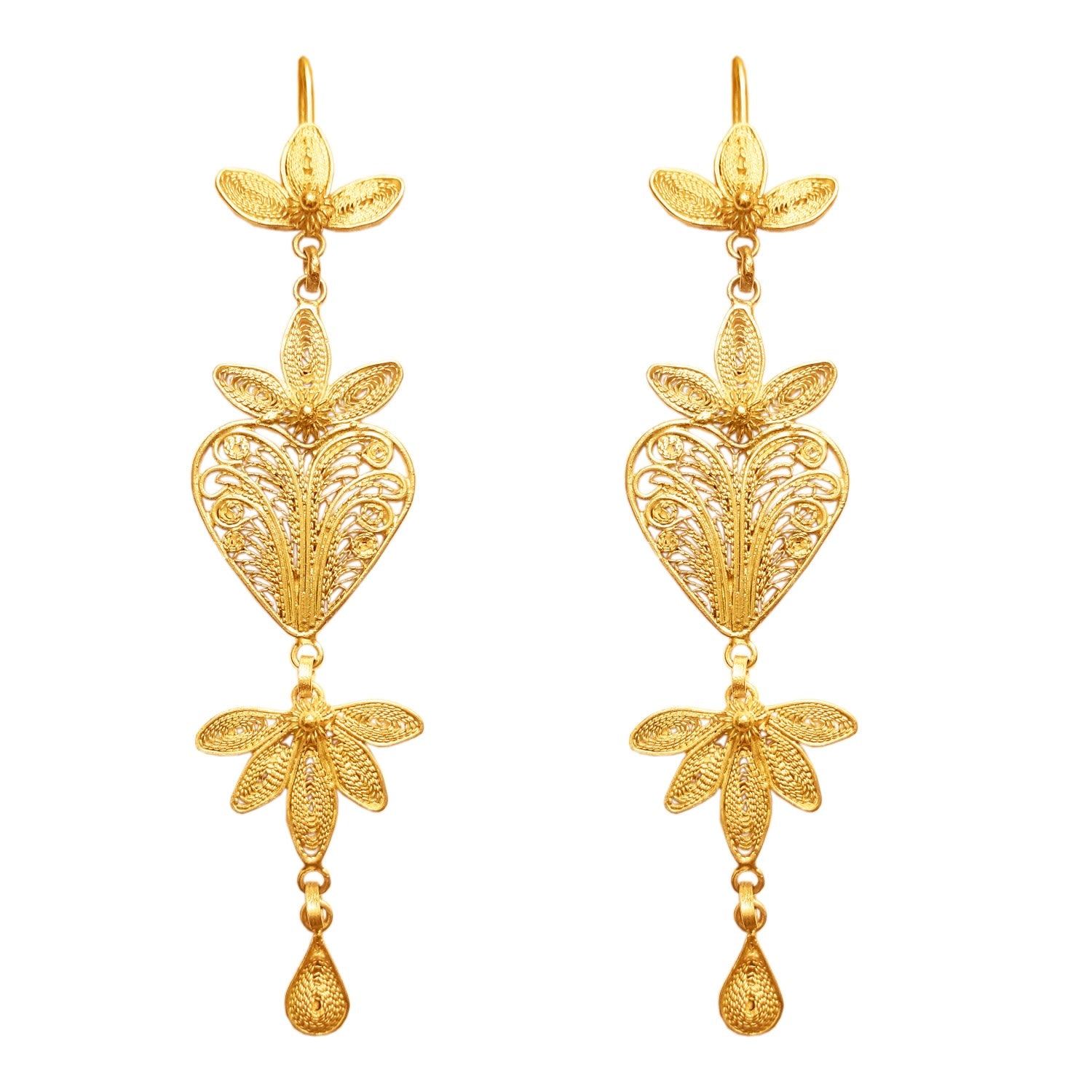 These Milagro Iv by Mamba are a unique and powerful accessory. Inspired by the "milagritos" of Mexico, these handmade chandelier earrings feature a representation of flames and rays. They are a chic yet lightweight statement piece.